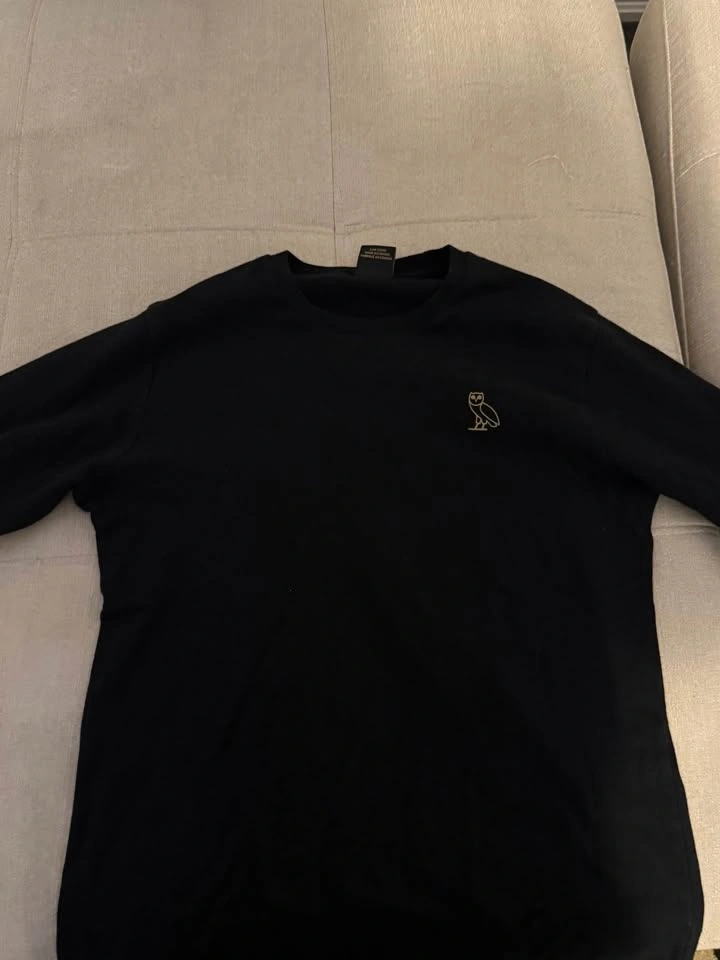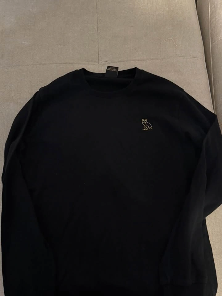 Gently worn black OVO long sleeve shirt in size Small. Has a gold owl logo on the chest. In great shape, no stains or rips. True to size.