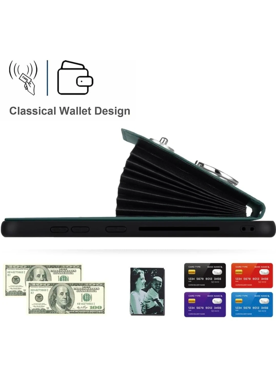 This phone case is designed for Samsung Galaxy s24fe and features a classical wallet design. It also acts as a secure stand for reading and watching videos. The ring stand rotates 360 degrees for easy use