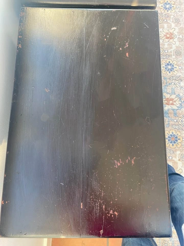 All pieces are in very good condition with light wear and intentional distressing consistent with the style. There is some water damage on the bedside tables (see photos) that can be fixed with a black wood marker.