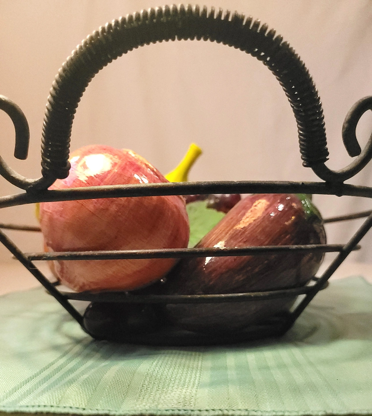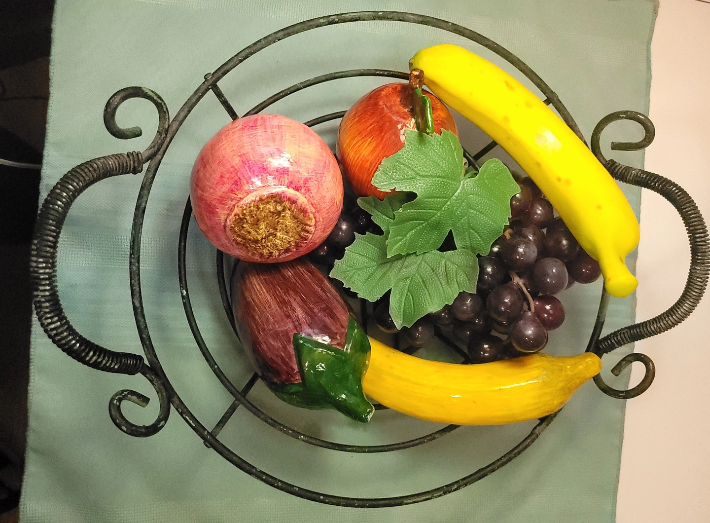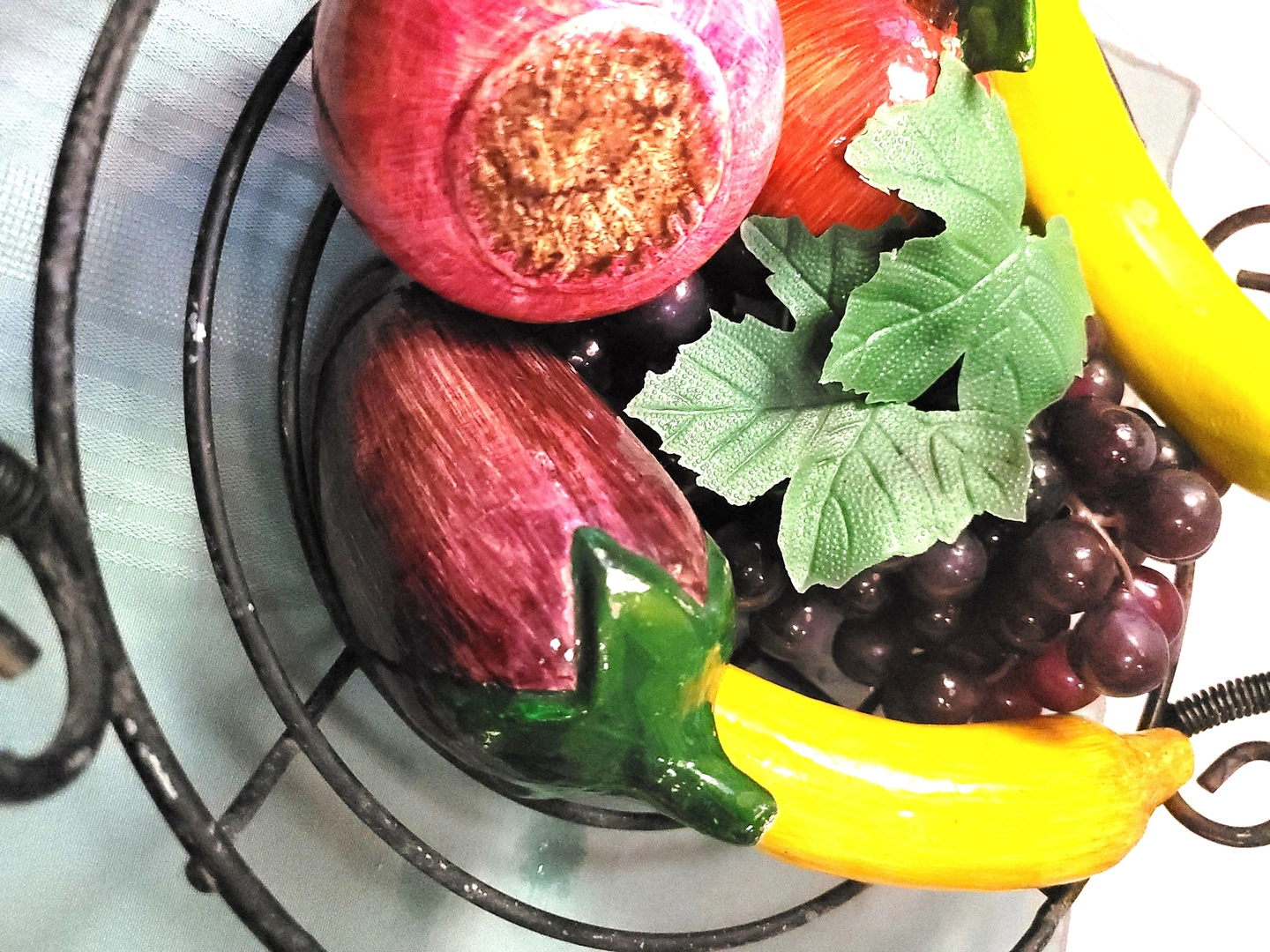 70s Wrought Iron Scroll Fruit Basket 6pc Lightweight Faux Fruit