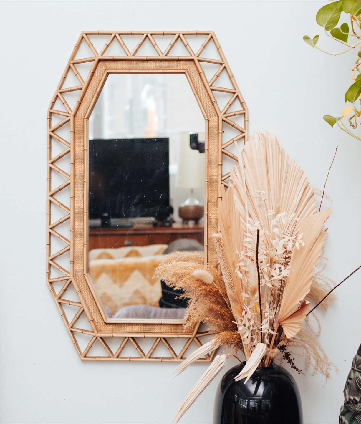 Vintage Rattan Wall Mirror – Geometric Frame (18” x 31”)