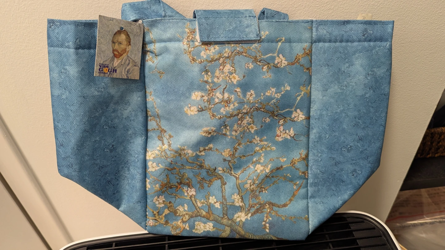 Keep your lunch cool in style with this Van Gogh Almond Blossom insulated lunch bag! It's perfect for work, school, or picnics. The bag features a beautiful Almond Blossom print and is insulated to keep your food fresh. Item is brand new and unused, purchased during the impressive Van Gogh exibit in Toronto.