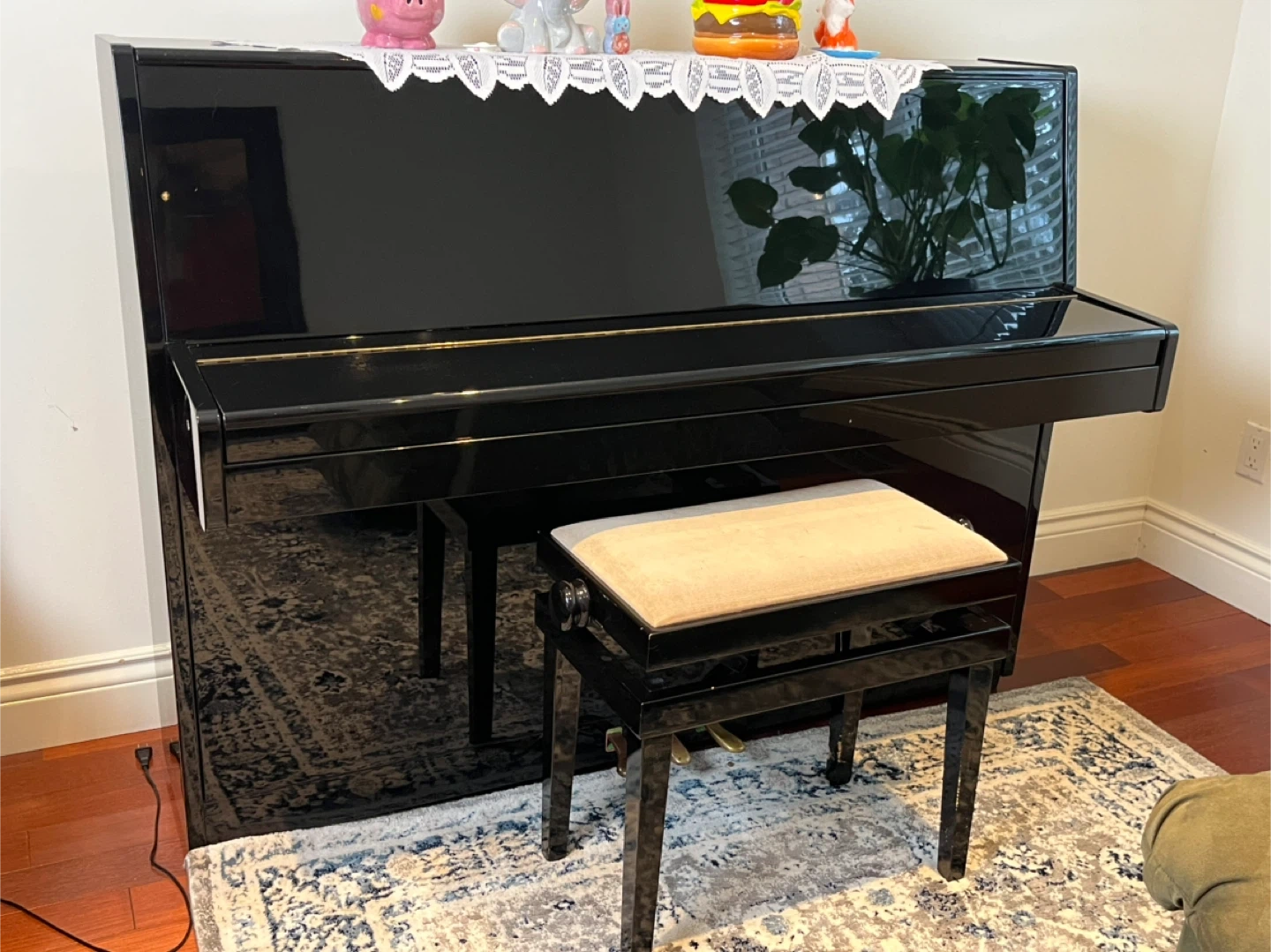 Selling a Hohner upright piano in good condition. It comes with a matching bench. The piano is black and would be a great addition to any home or music studio. Feel free to reach out if you have any questions!