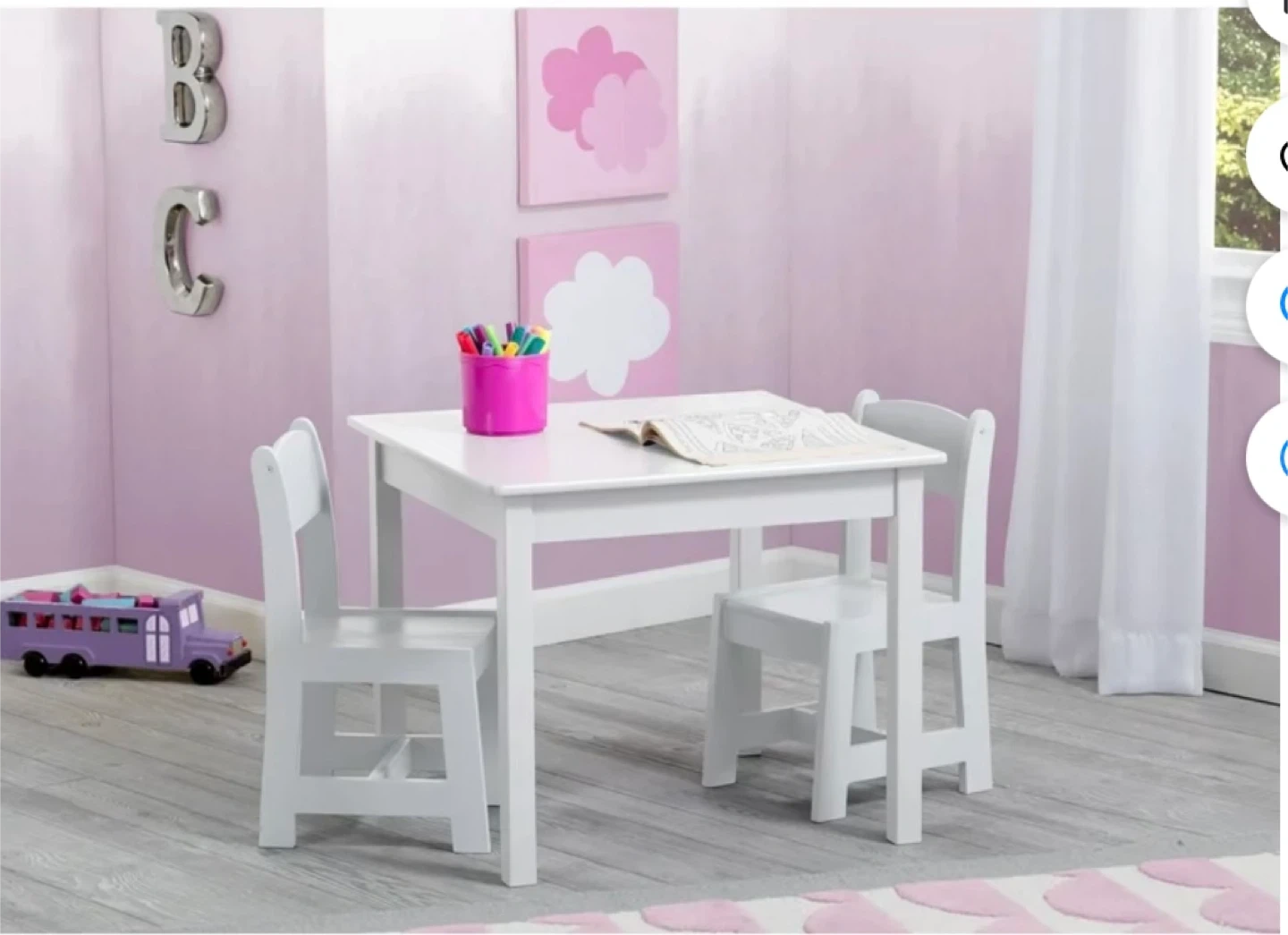 Delta Children MySize Wood Play Table and Chair Set (2 Chairs Included) - Greenguard Gold Certified, Bianca White