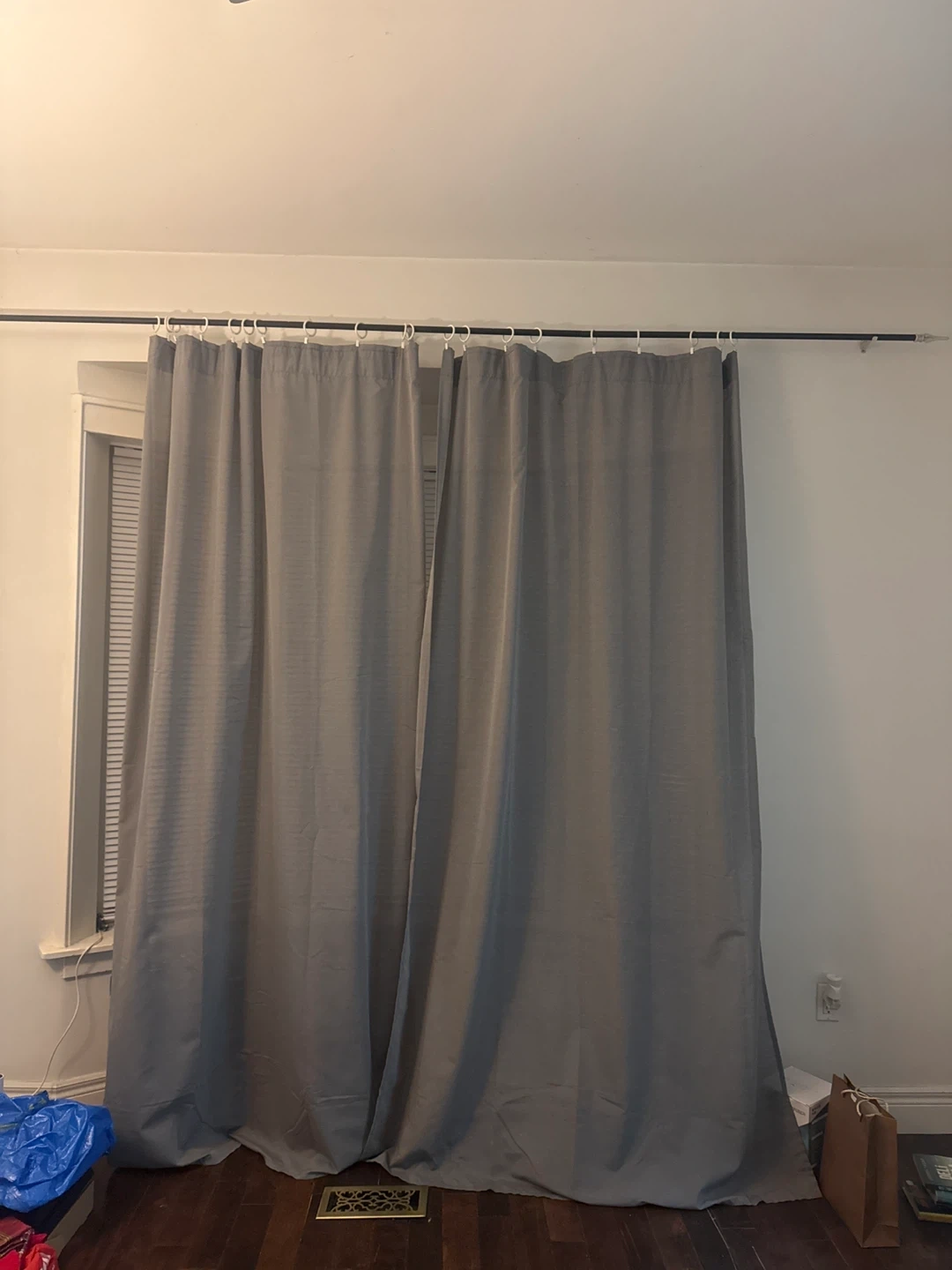 Selling a pair of IKEA Hilja curtains in gray- comes with Ikea curtain rings with clips. They're light filtering. Each curtain measures 145x250 cm (57x98 ½ "). Originally bought for $24.99
