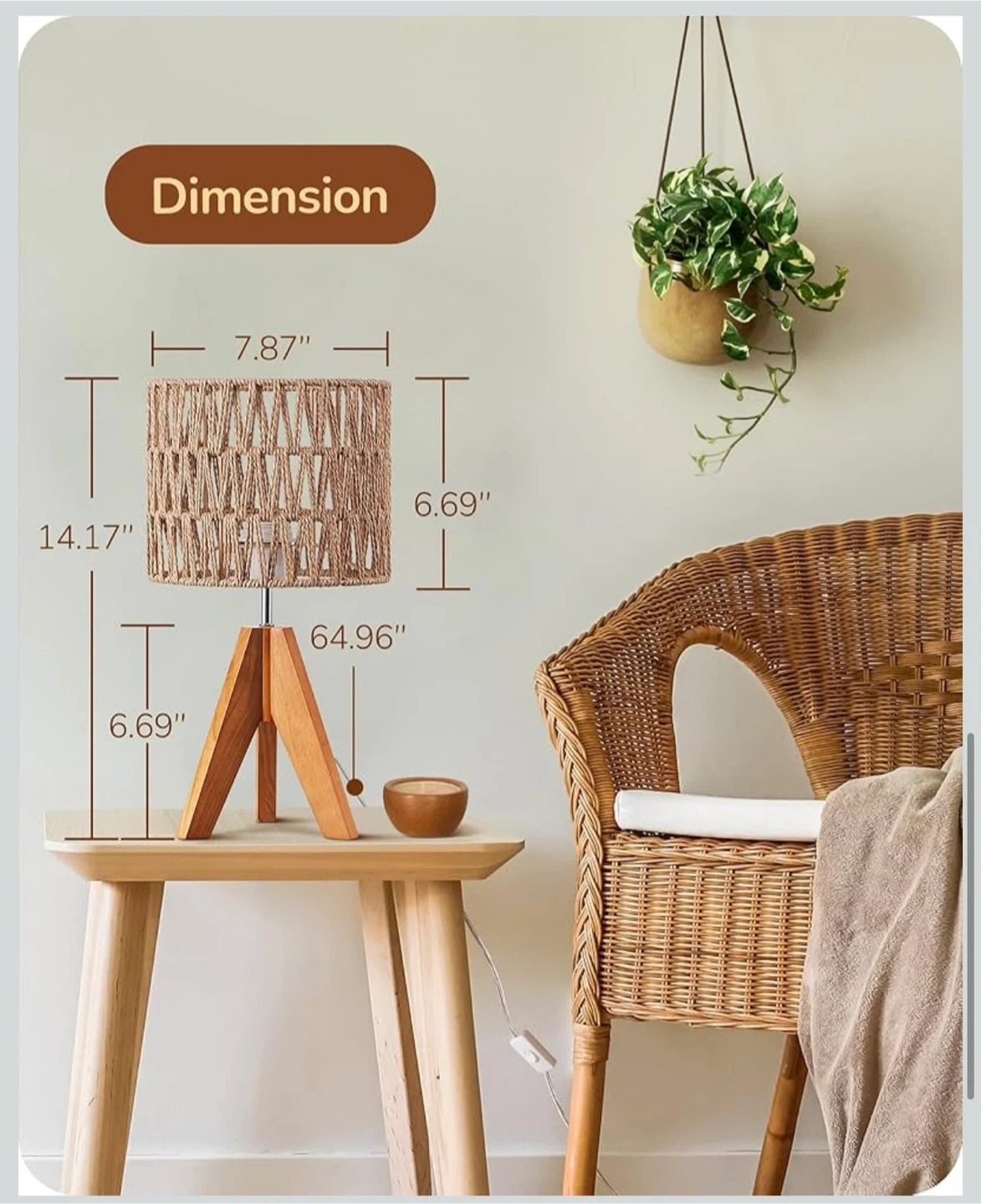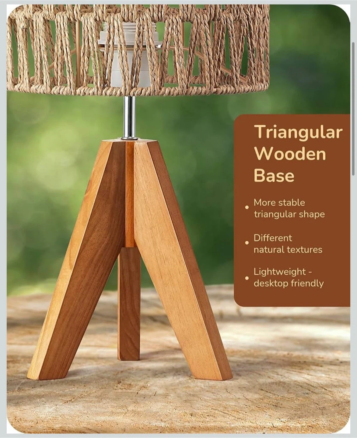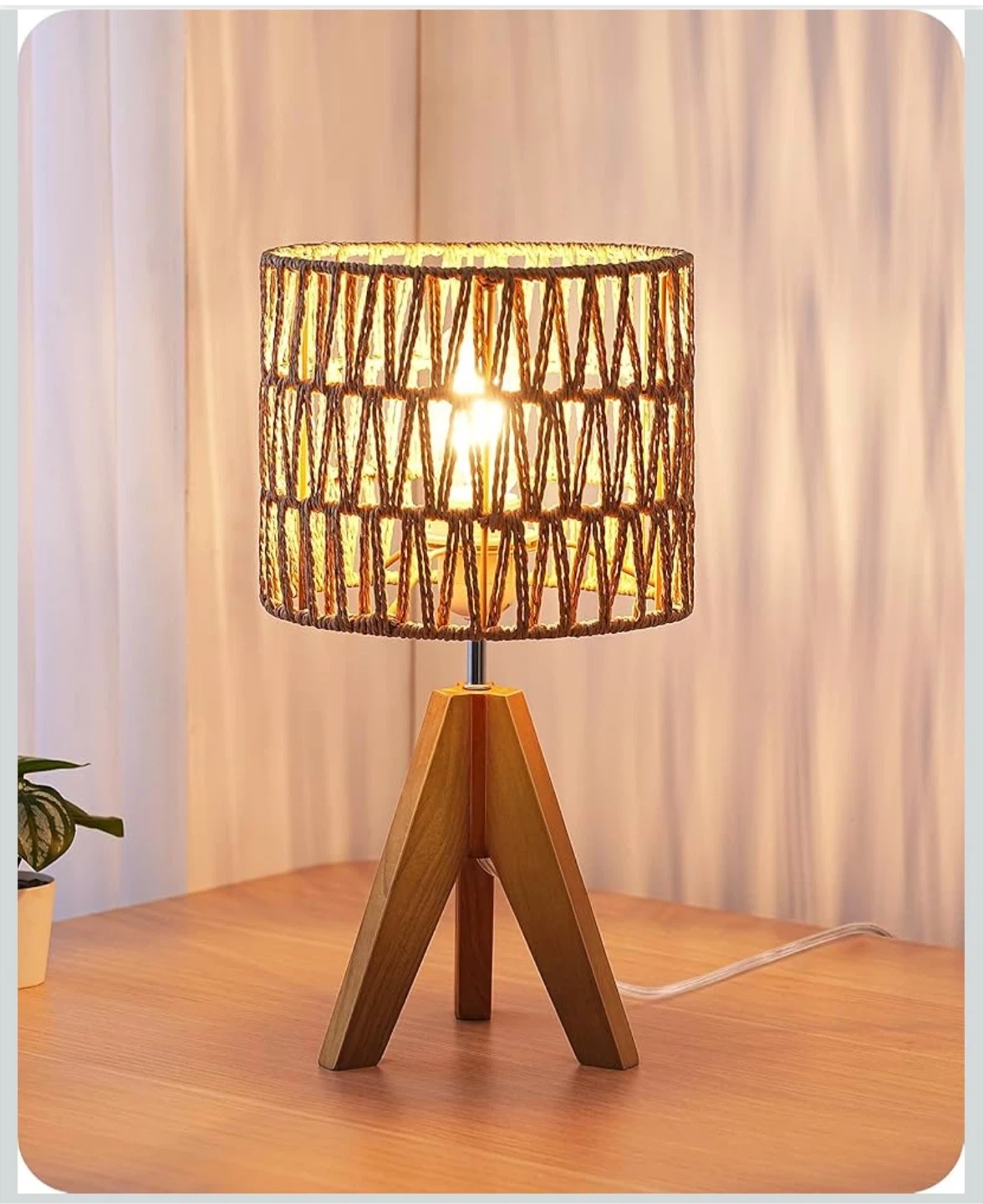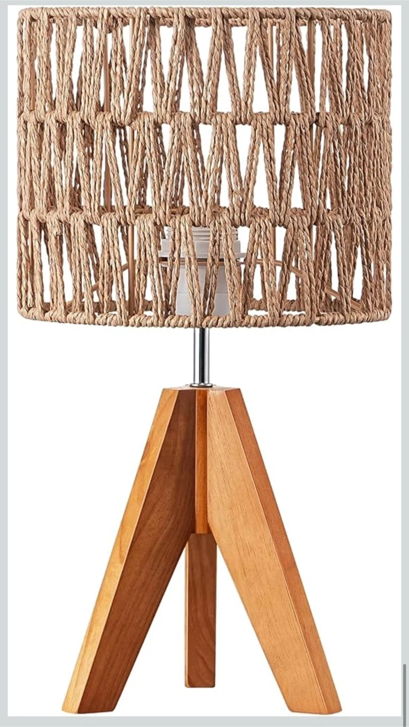 EDISHINE Small Table Lamp Bedside Lamp Nightstand Lamp Boho, Natural Style, Rattan Wood, Tripod, Living Room, End Table, Office, E26 Base