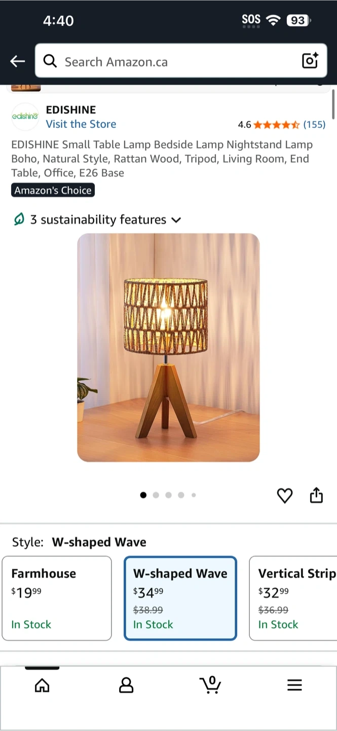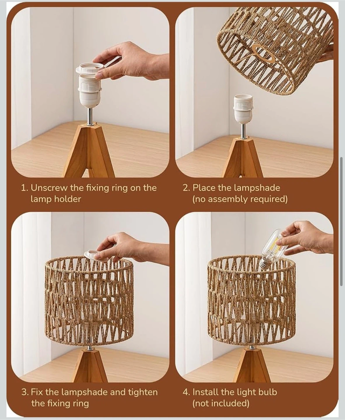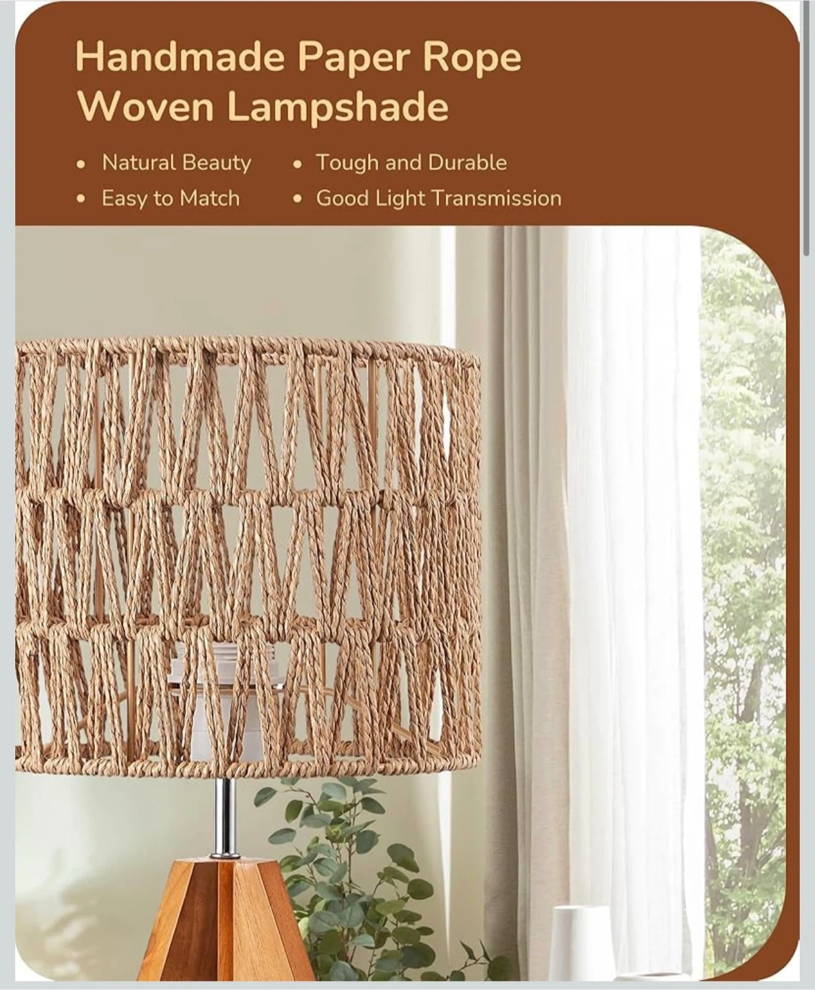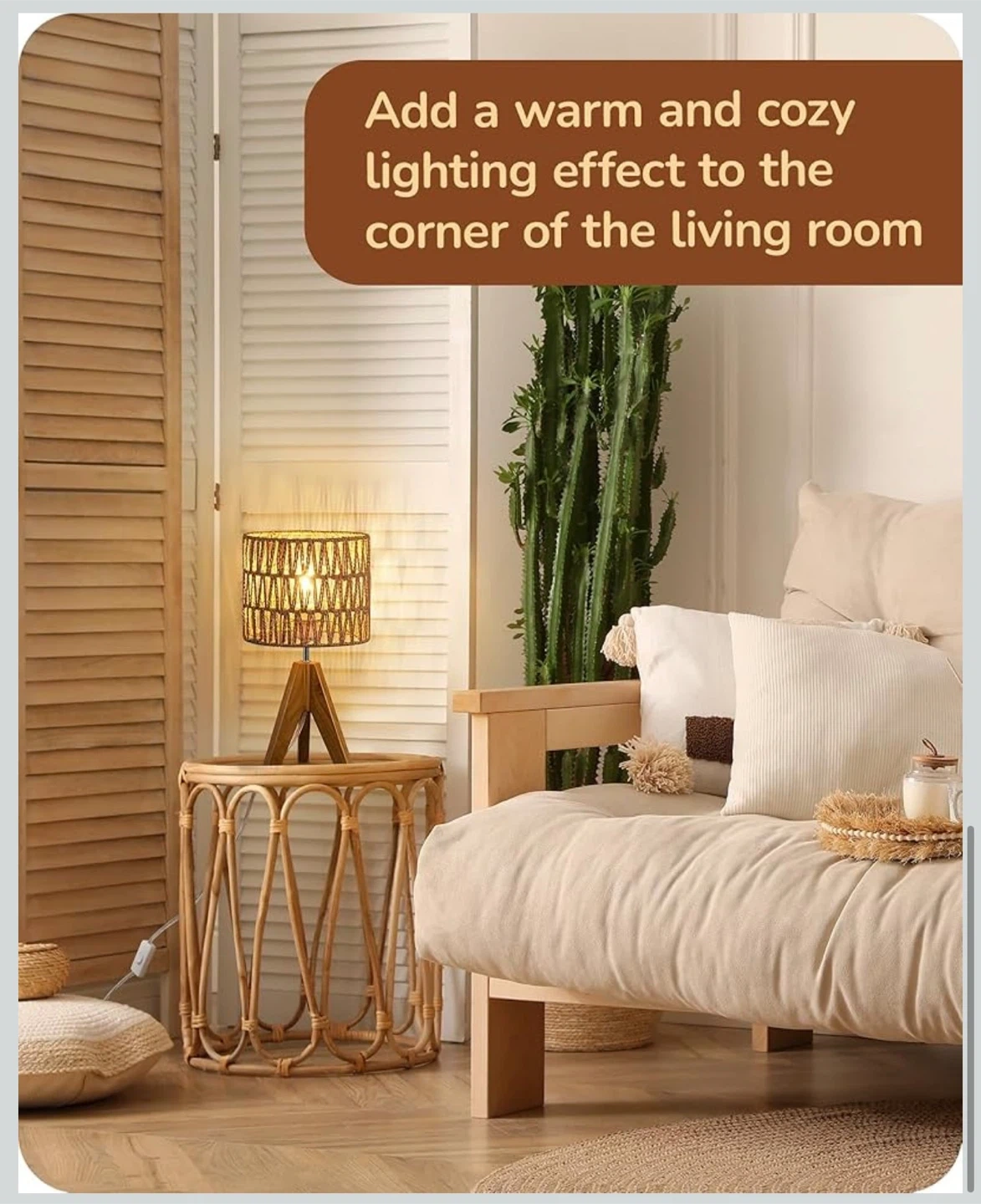 EDISHINE Small Table Lamp Bedside Lamp Nightstand Lamp Boho, Natural Style, Rattan Wood, Tripod, Living Room, End Table, Office, E26 Base