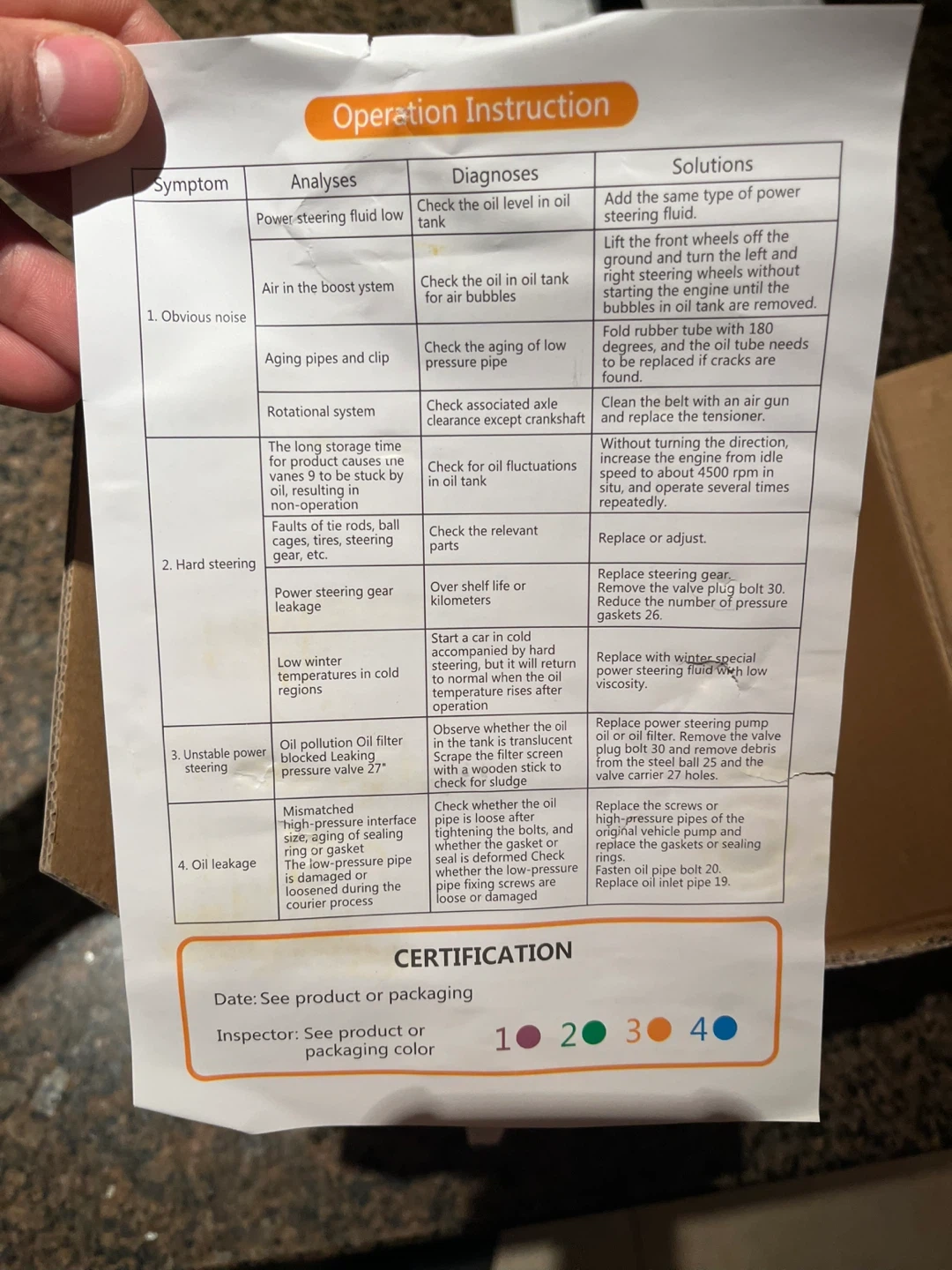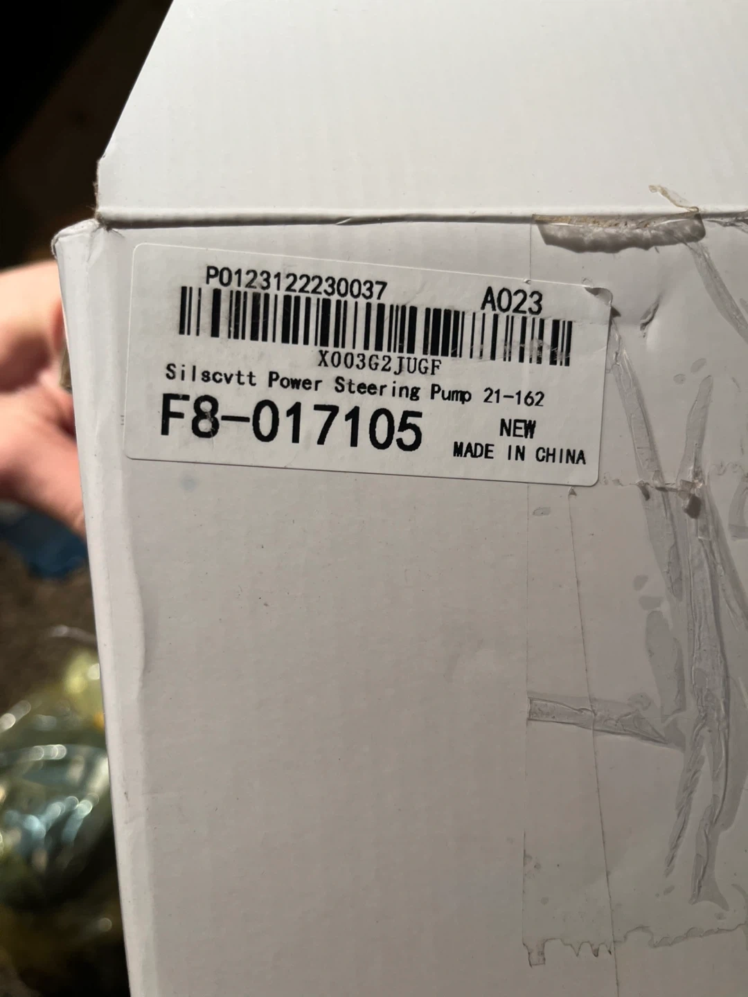 Selling a brand new Silscvtt Power Steering Pump, model F8-017105. It comes in its original box with all components as shown in the pictures. Please refer to the product packaging for operation instructions and detailed specifications