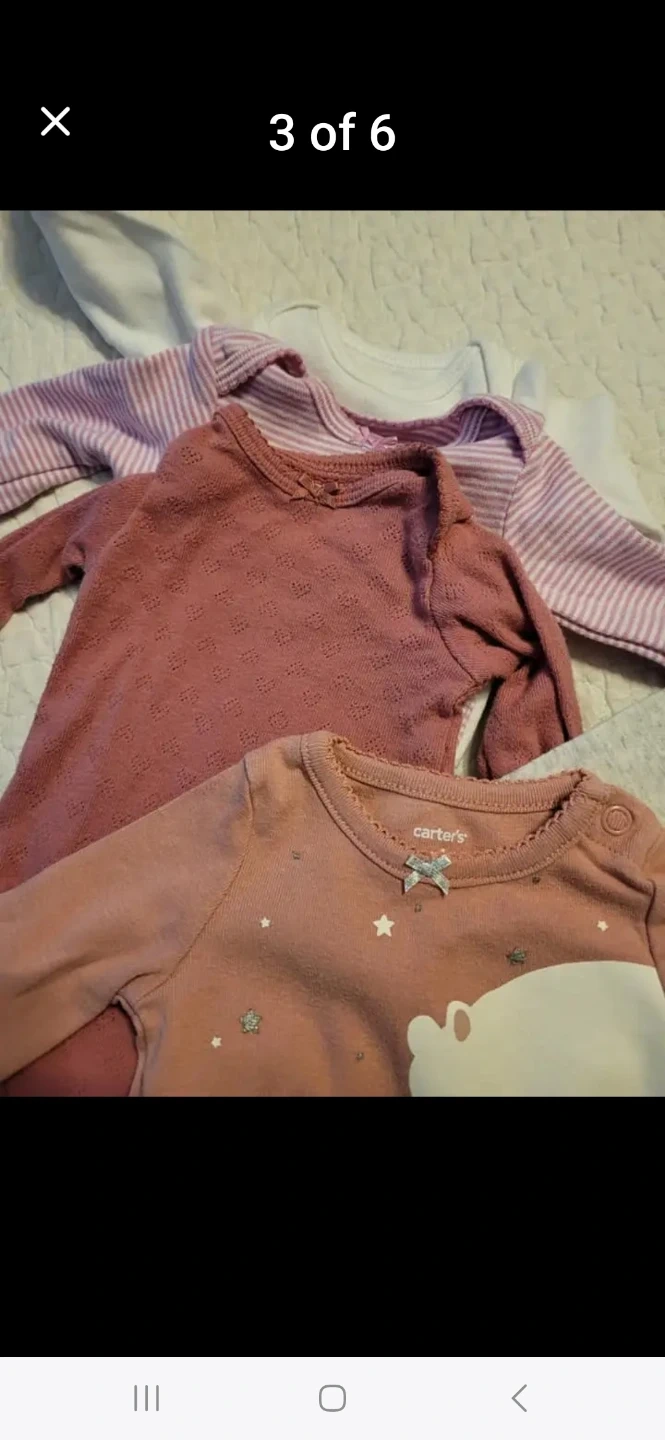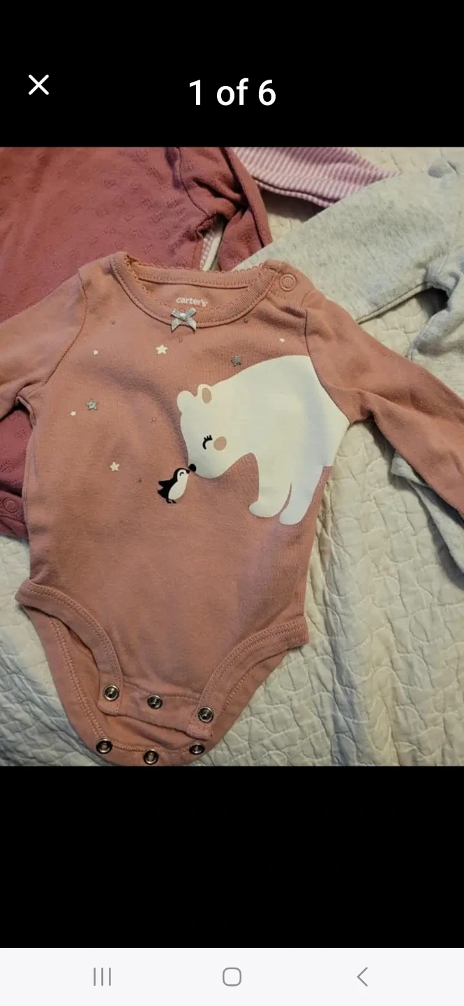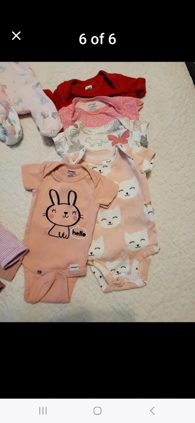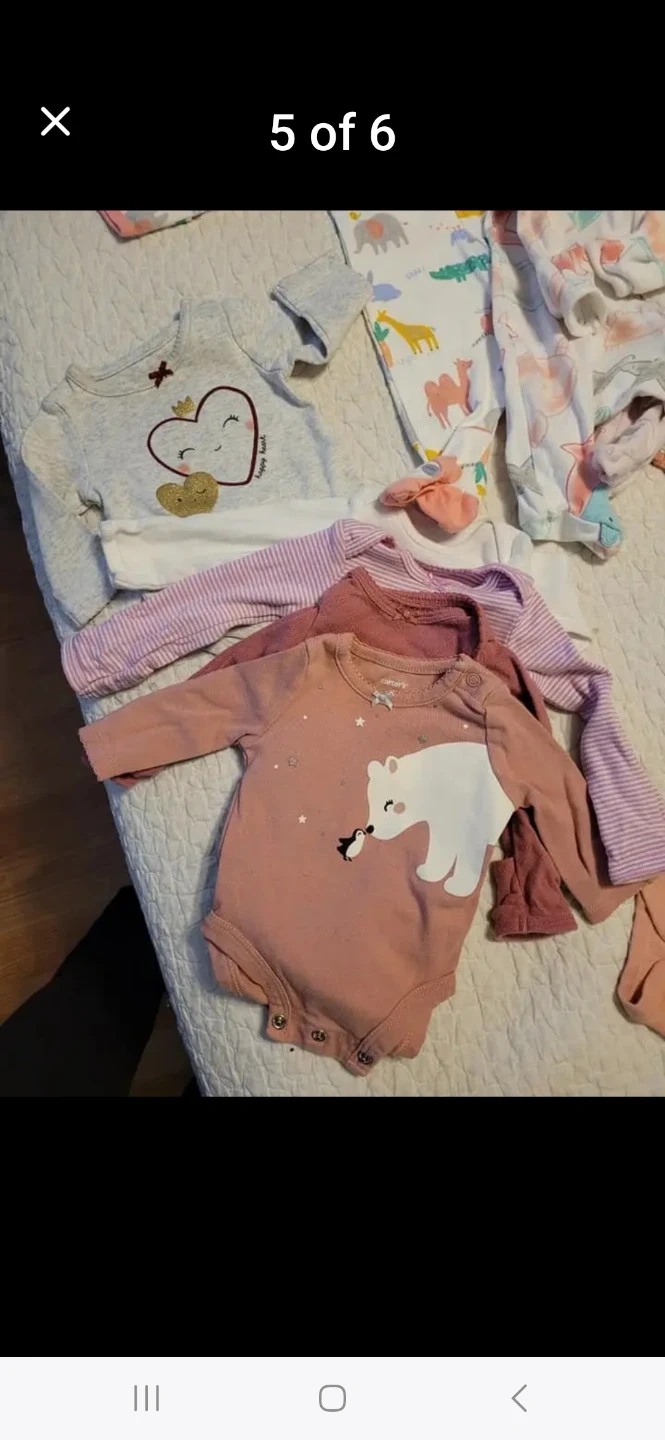 A sweet collection of baby onesies in various colours and patterns! Brands include Carters and more. Perfect for your little one!