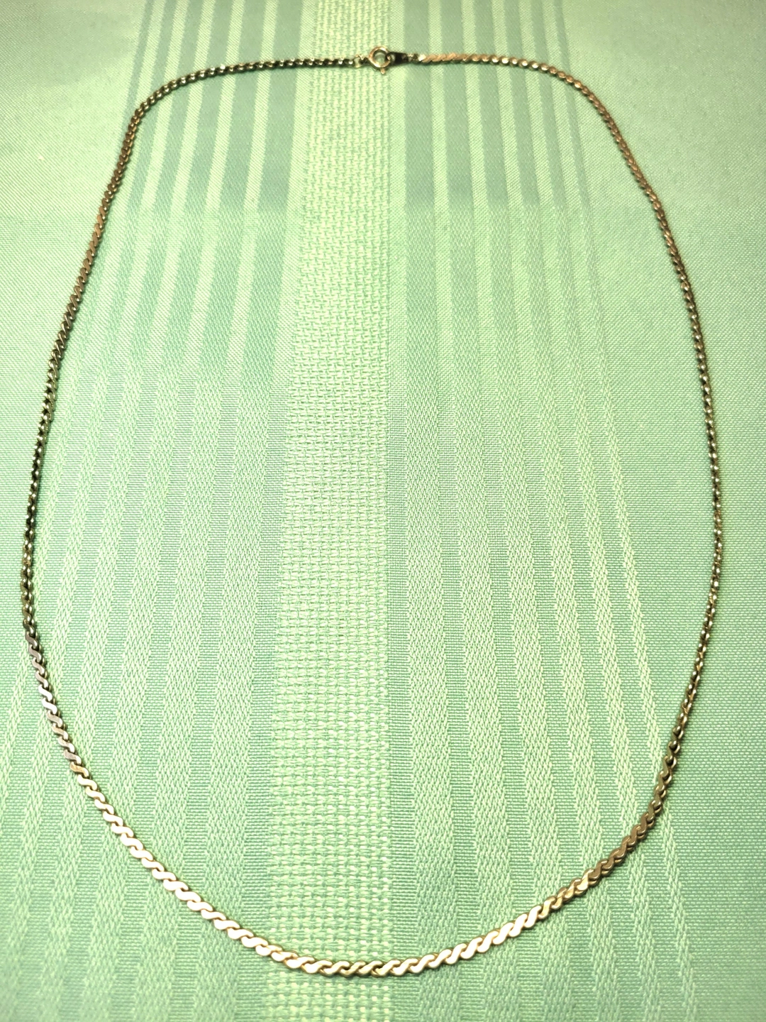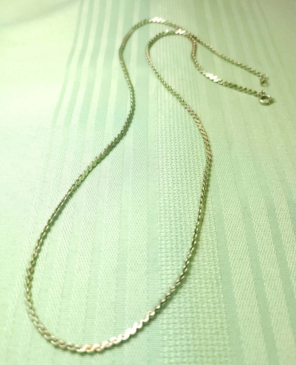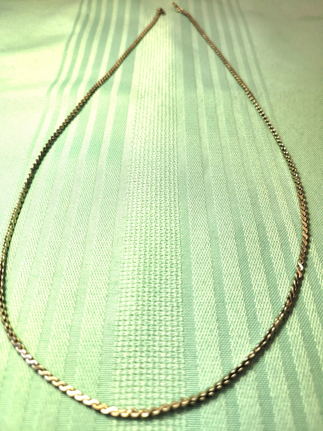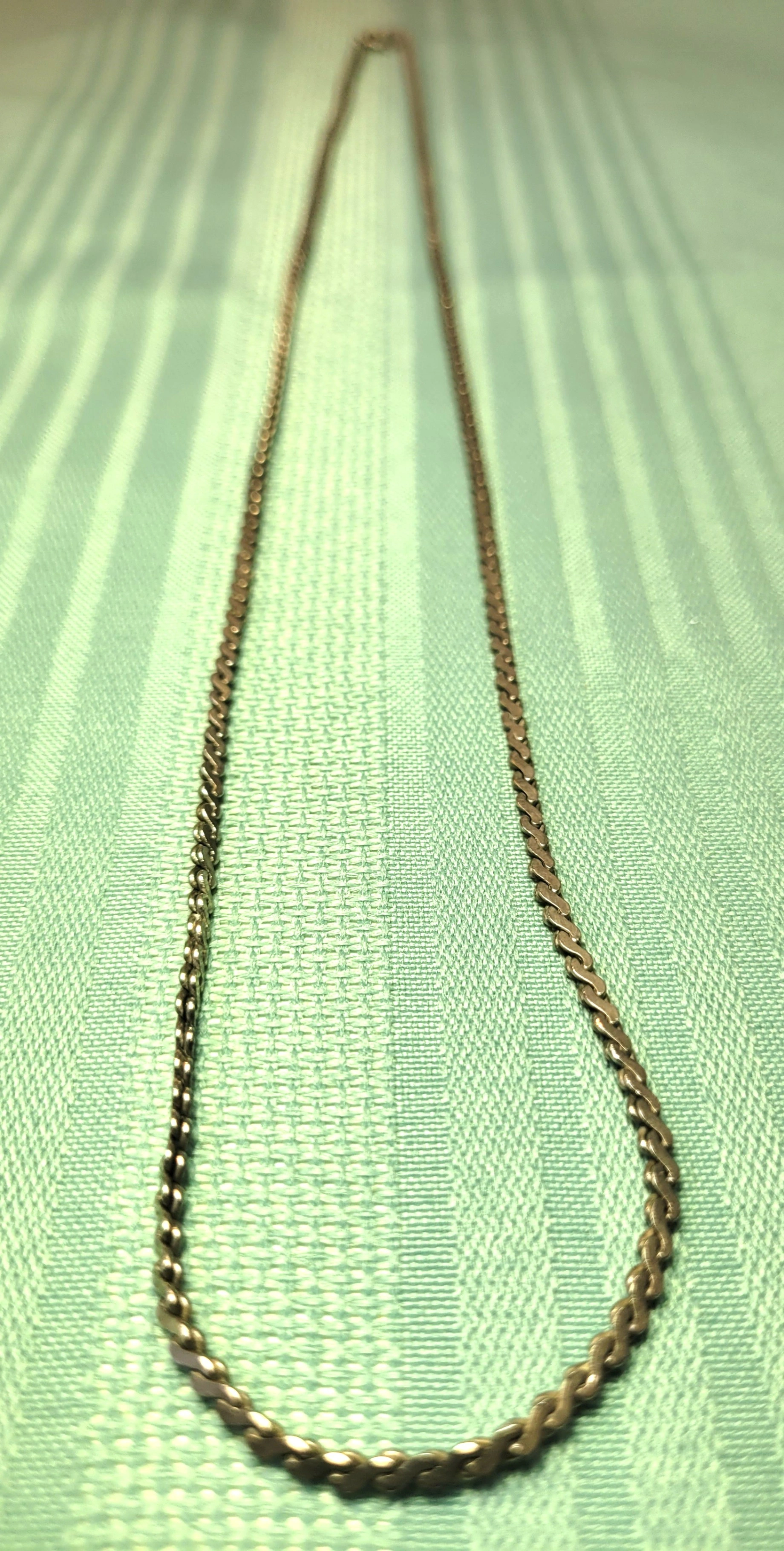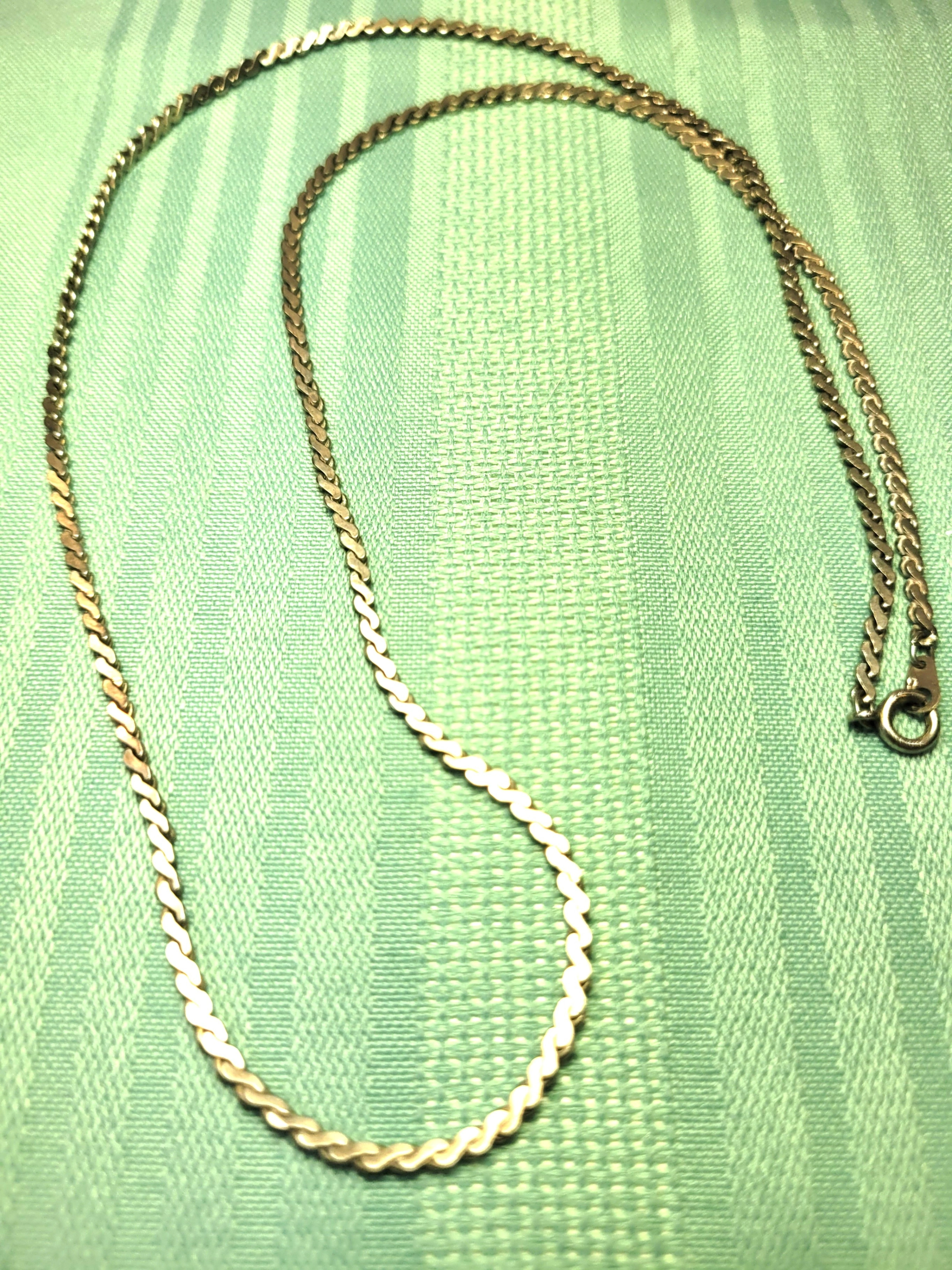 Up for sale is a substantial vintage silver-tone flat curb link chain, measuring a generous 24 inches. This is a high-quality piece from the 1980s, featuring precision-cut beveled links that lay perfectly flat and smooth against the skin. Unlike modern plated jewelry, this vintage chain has a deep, chrome-like luster and a heavy, solid feel. It is finished with a secure lobster claw clasp and is a versatile unisex piece that holds its shine without the maintenance of sterling silver.