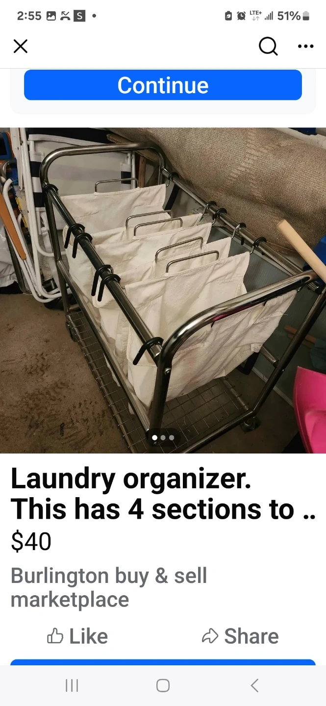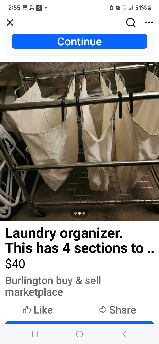 Laundry organizer with four sections. Great for sorting your whites, darks, and colours! This is a handy way to keep your laundry organized and ready to go
