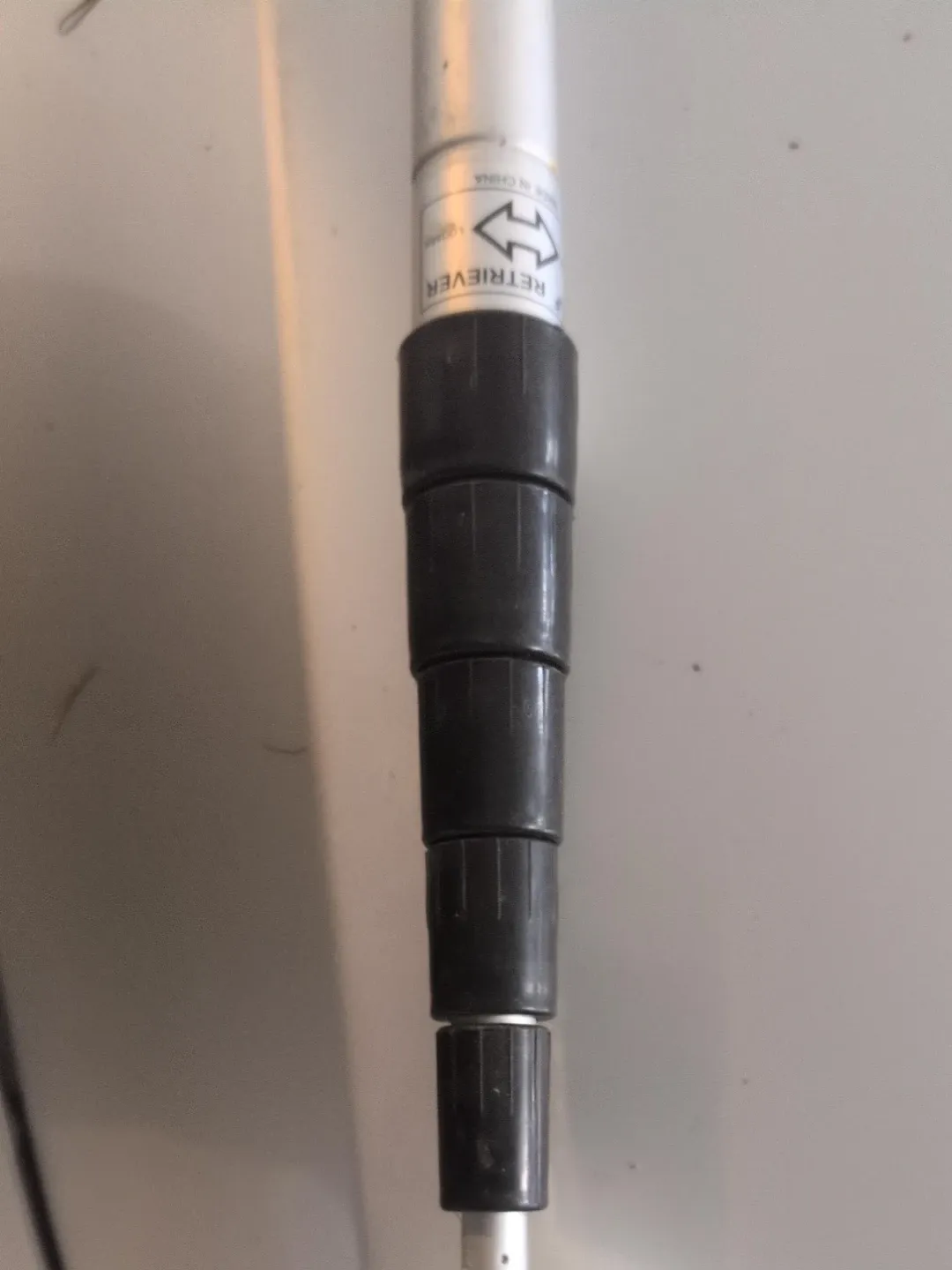 Selling a golf ball retriever. It appears to be in good condition and ready to help you get those hard-to-reach balls! It's a handy tool for any golfer looking to save time and effort on the course