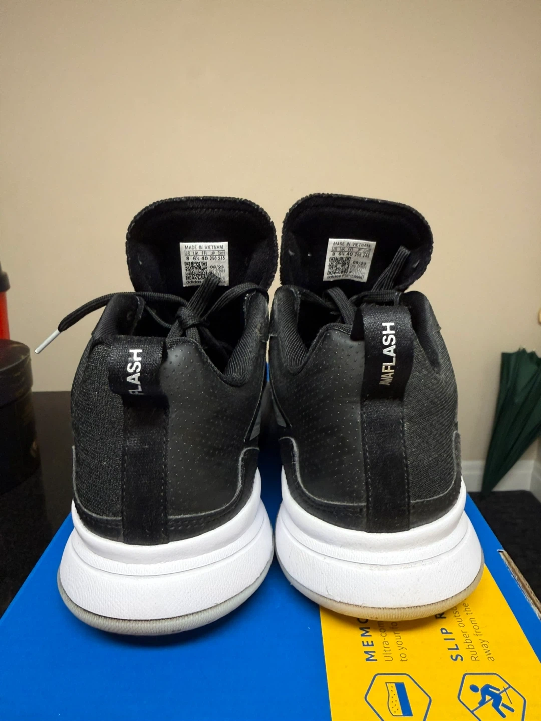 Adidas Adiflash shoes in black with silver stripes! These are a wide fit and have Adi Tuff technology. Great for everyday wear or sports