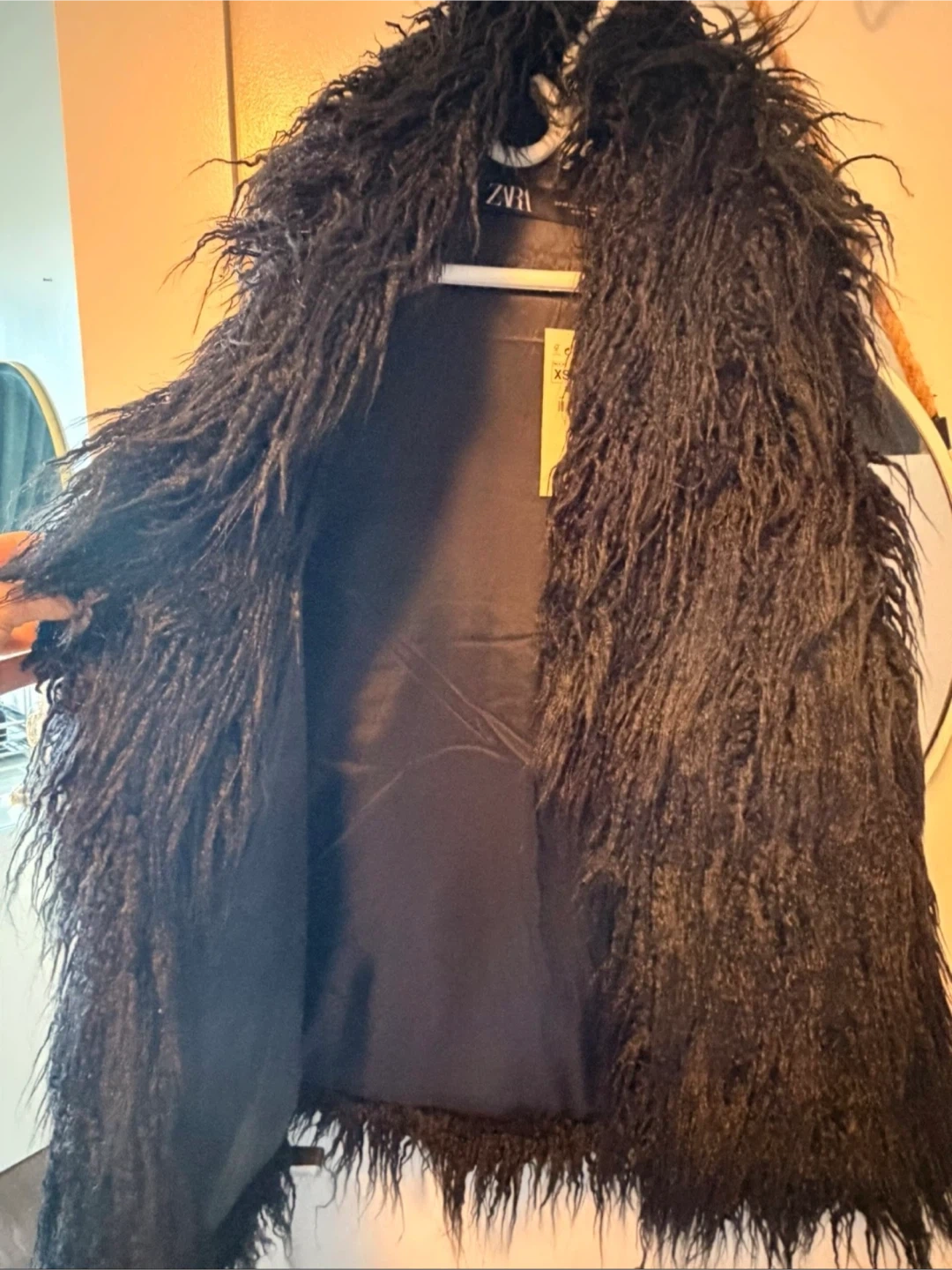 Selling a Zara faux fur vest in size XS! It's a stylish and unique piece to add to your wardrobe. The vest is in BRAND NEW and ready for a new owner. Perfect for layering and adding texture to any outfit!