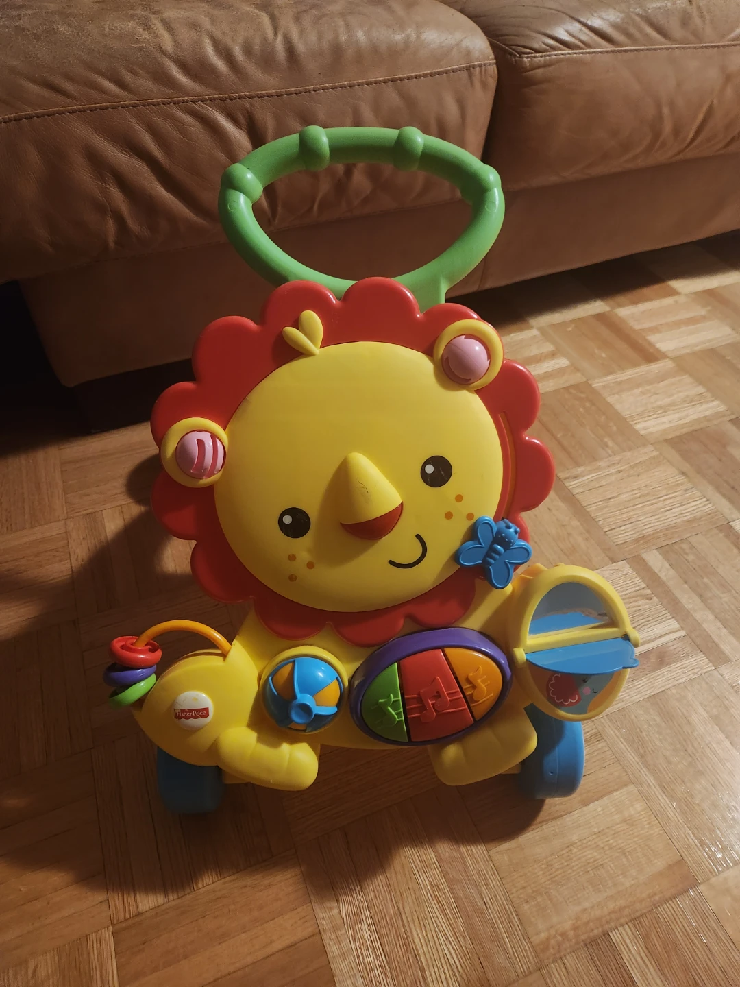 Check out this adorable Fisher-Price Lion Walker! It's in great shape and ready for a new little one to enjoy. Perfect for helping your baby learn to walk while having fun with the cute lion design and colourful details