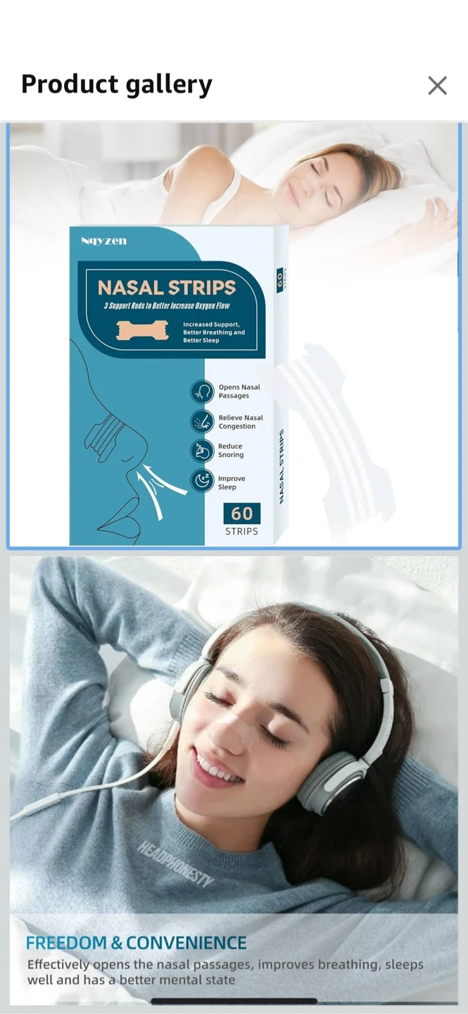 I'm selling a brand new pack of NayZen Nasal Strips! These strips are designed to help increase oxygen flow, provide better support, and improve breathing for a better night's sleep. Each pack contains 60 strips. The box includes instructions on how to properly apply the strips. Perfect for anyone looking to open nasal passages, relieve nasal congestion, and reduce snoring!