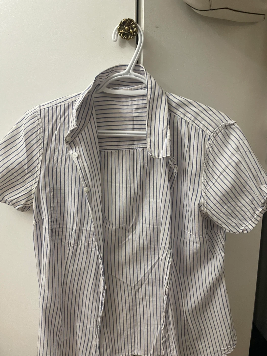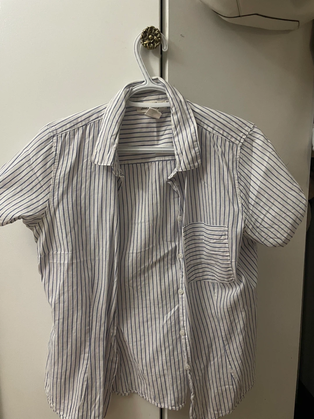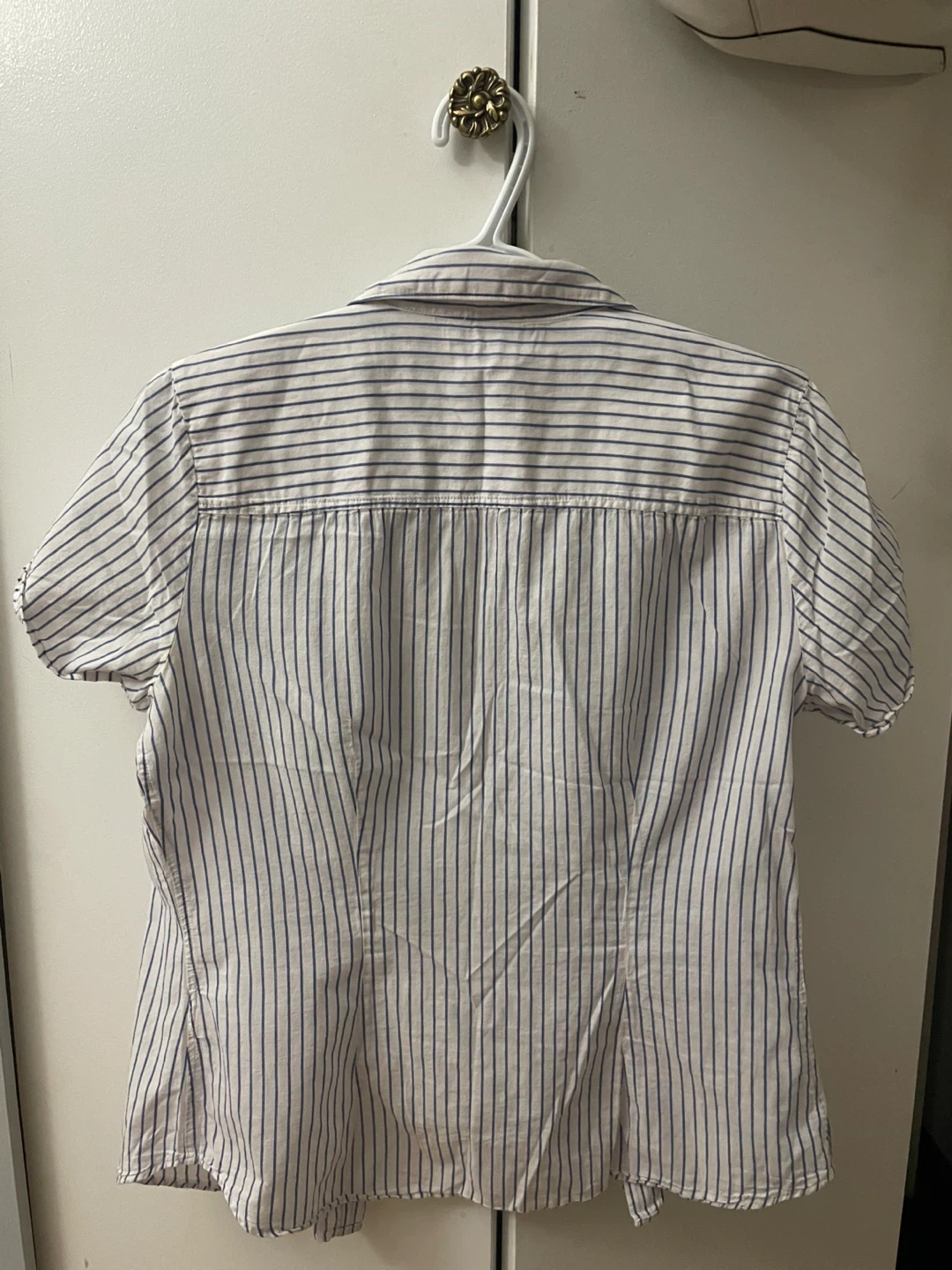 Here's a cute striped short sleeve shirt! It's in great condition and ready for a new owner. Perfect for a casual day out or dressing up for a more polished look