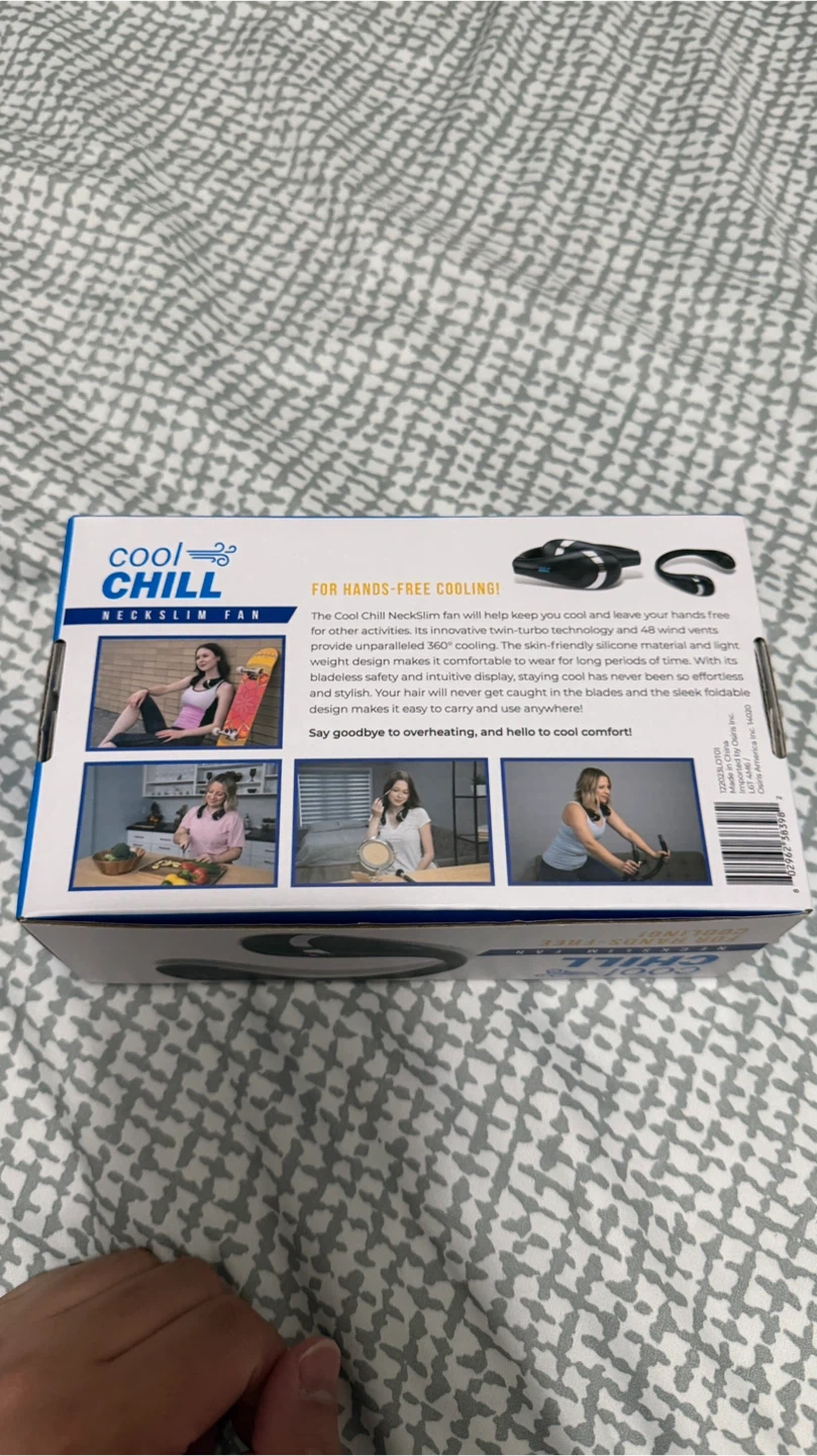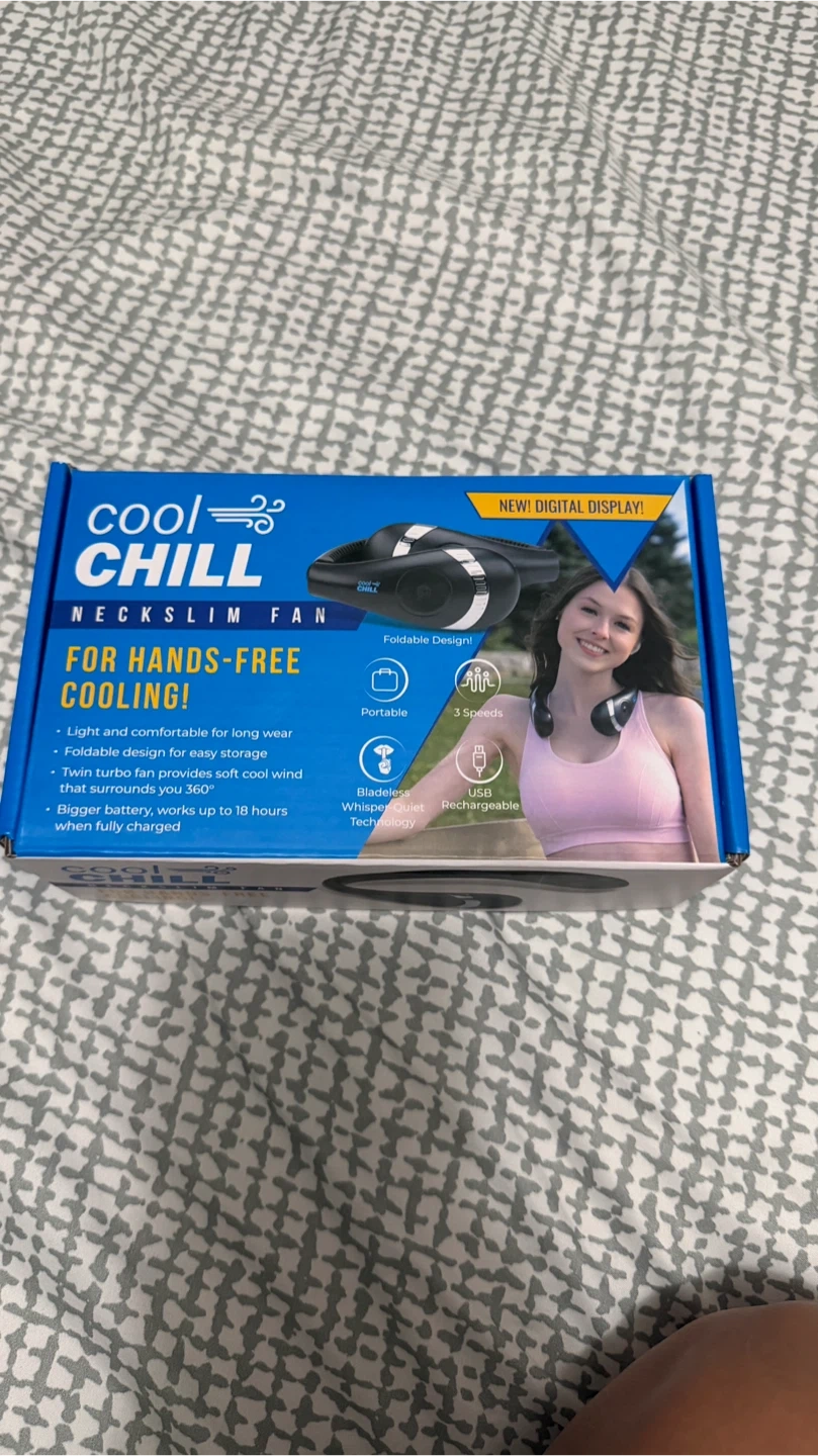 Selling a brand new Cool Chill Neckslim Fan, still in its original box! This hands-free fan is perfect for staying cool on the go.