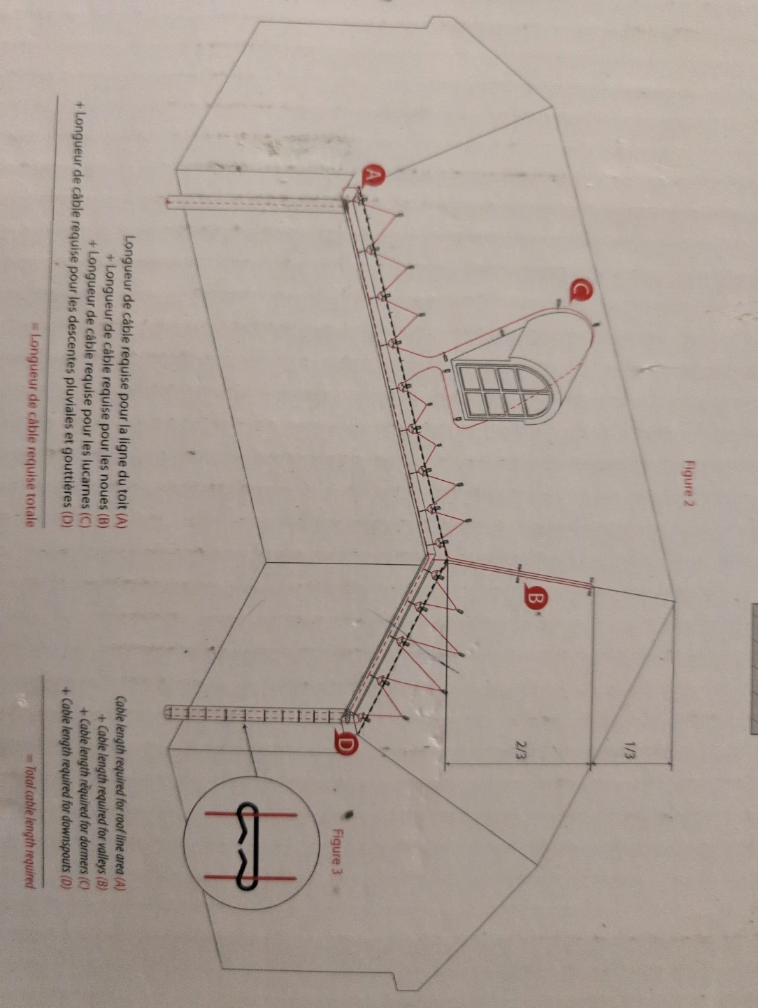 Heating cable for roof and gutter de-icing. 200 pi/ft, 1000 Watts. Preassembled 120V constant wattage cables for roof and gutter de-icing