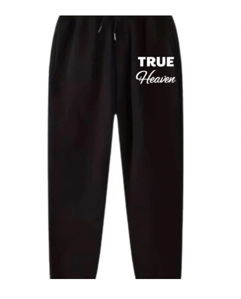 Selling a pair of black sweatpants with 'TRUE Heaven' printed on them! They're super comfy and great for lounging around at home or running errands. The material feels soft and cozy, perfect for the cooler weather.