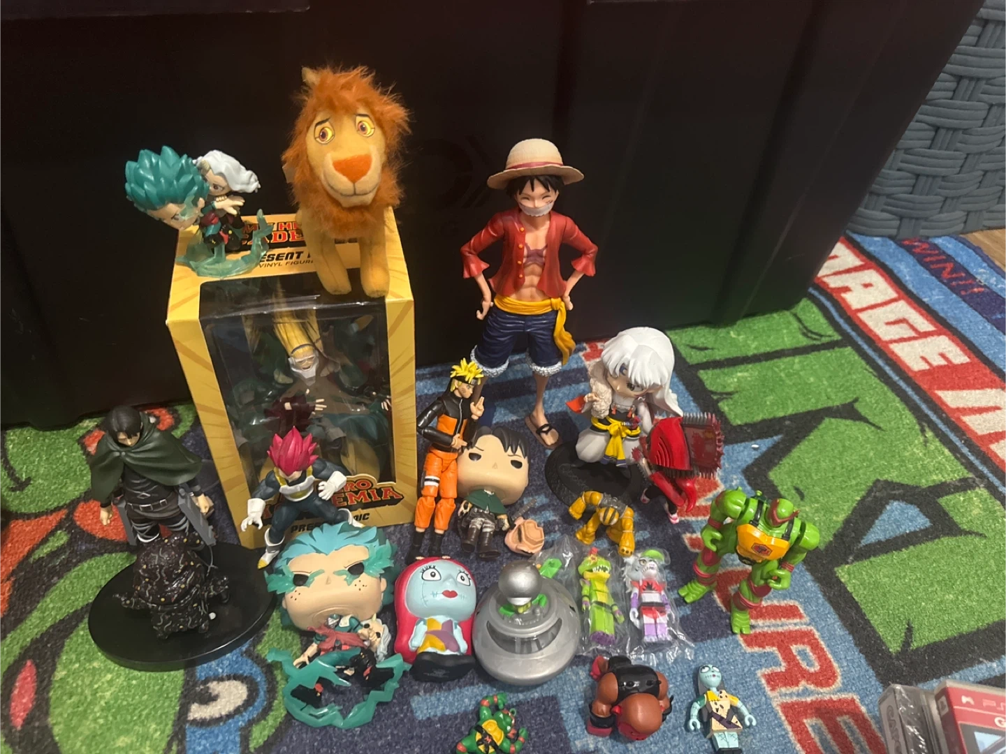 Selling a collection of anime action figures. Includes characters from My Hero Academia, One Piece, and more! Great for collectors or fans of anime