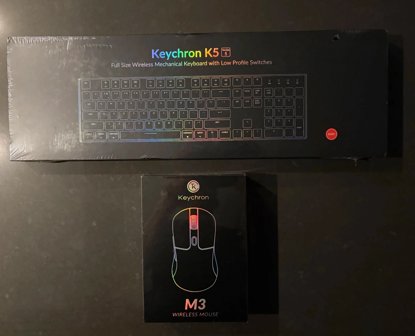 Keychron K5 (Version 5) full-size wireless low-profile mechanical keyboard and a Keychron M3 wireless mouse — both in their original boxes and in excellent condition. Great clean setup for work or gaming; bundle deal available (or can sell separately)