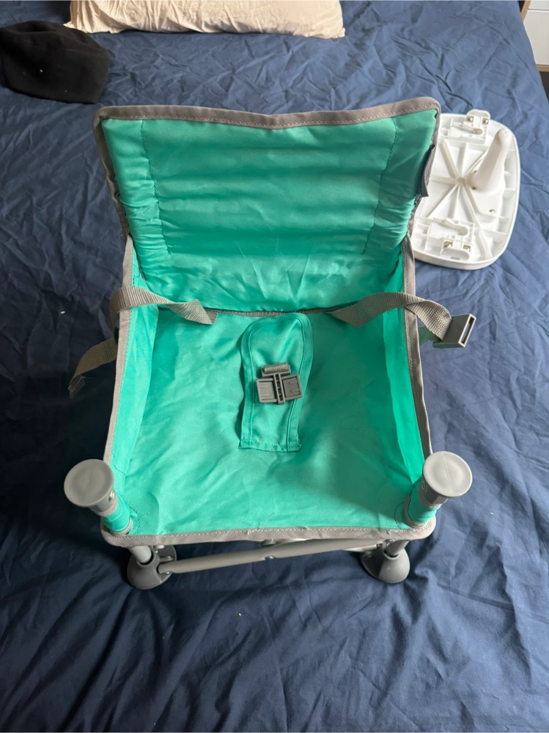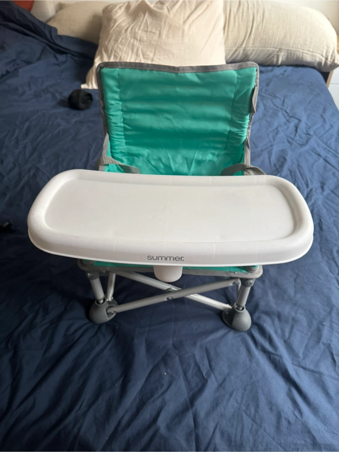 Selling a Summer Infant Pop and Sit Portable Booster in green! This handy booster seat is perfect for travel or mealtime at home. It comes with a tray and straps for secure seating. It's in great condition and ready for its next little one! I have 2 chairs available, I $30 if buying together.