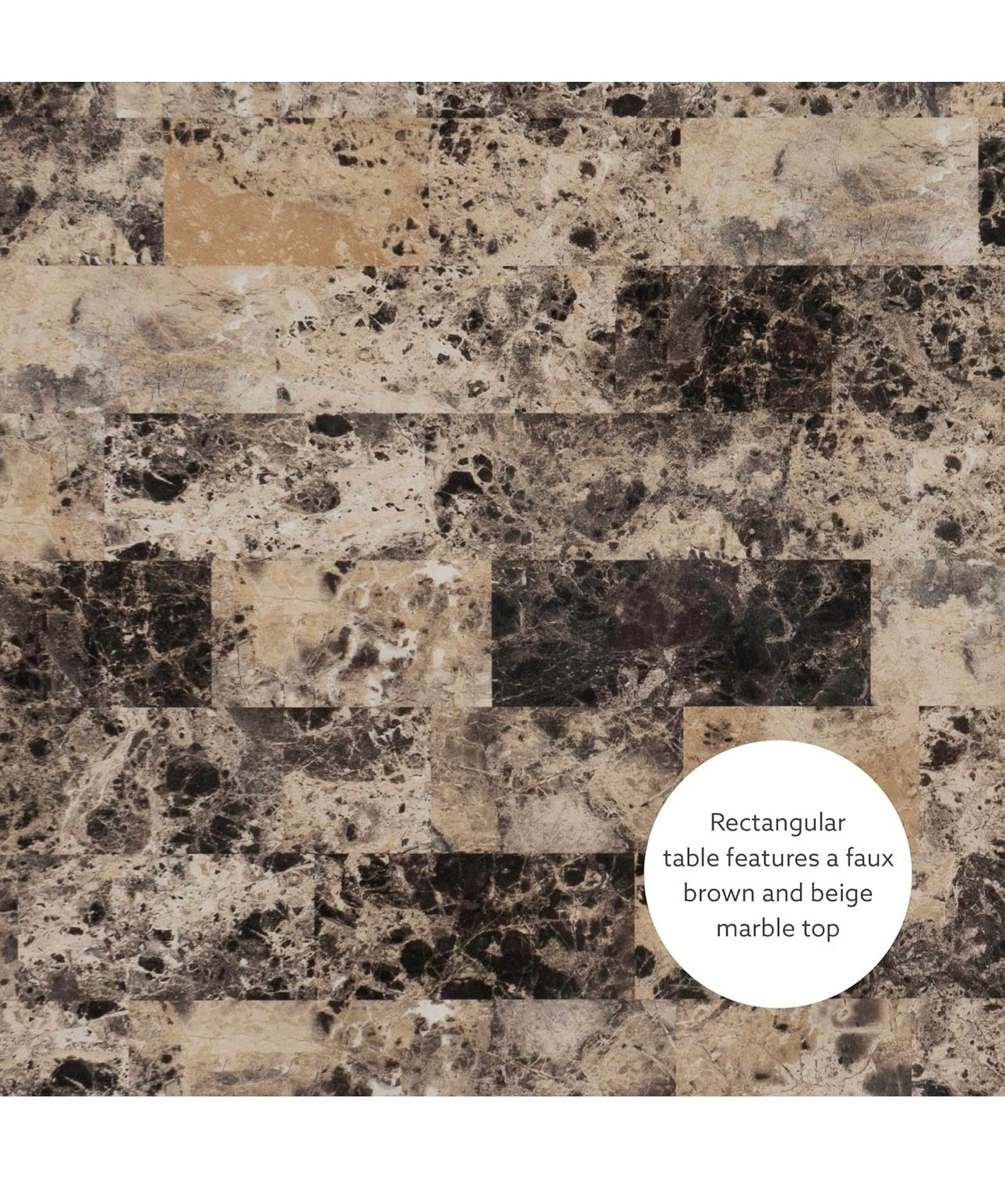 Hardwood construction with espresso finish; faux stone paper-wrapped table top