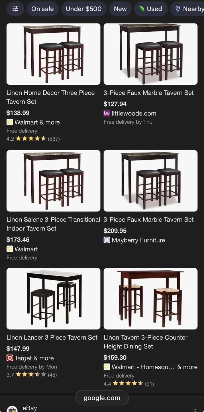 Your purchase includes One Linon Tavern Collection 3-Piece Table Set |1 Counter height table, 2 padded counter stools & all tools required for assembly