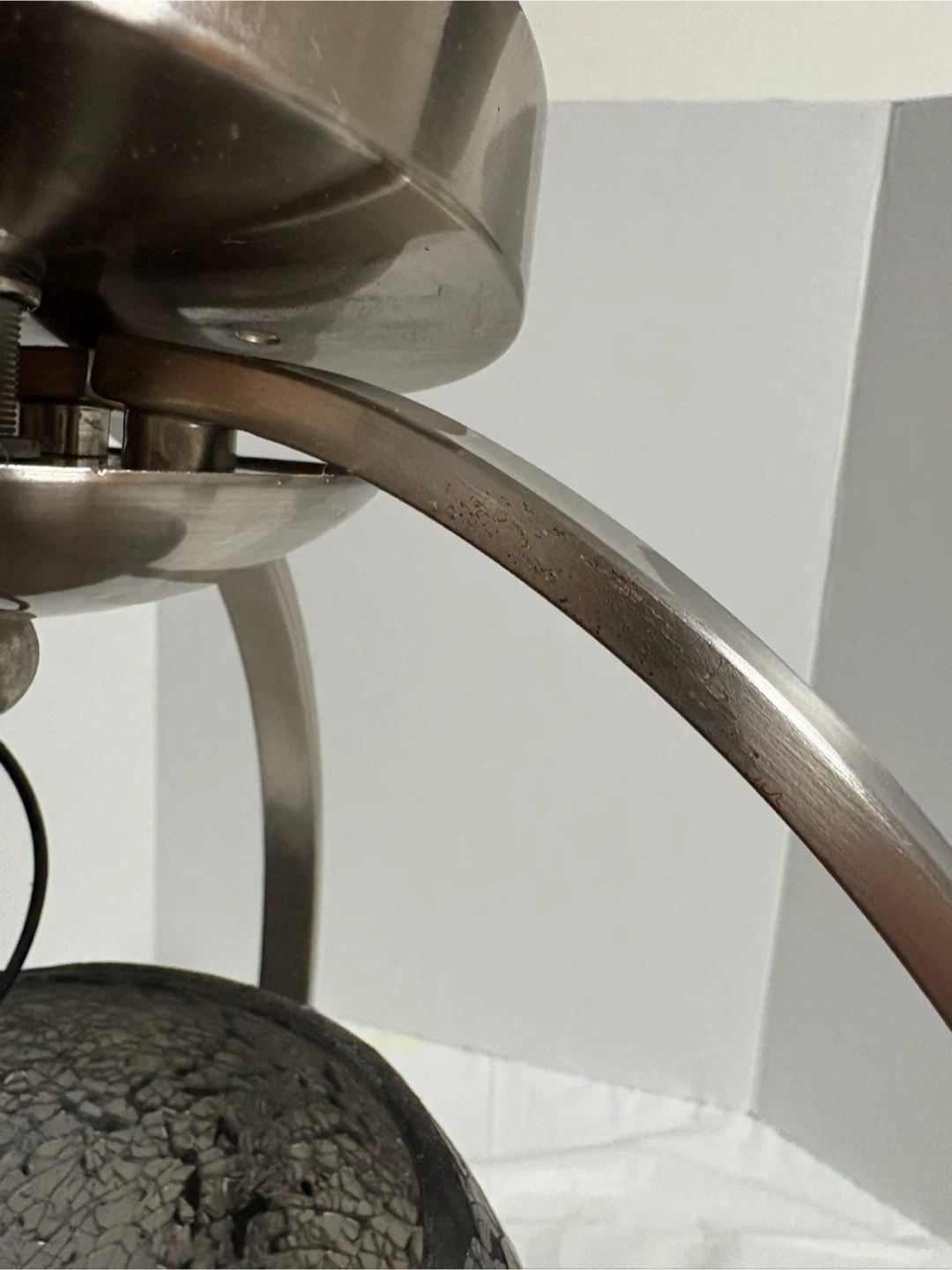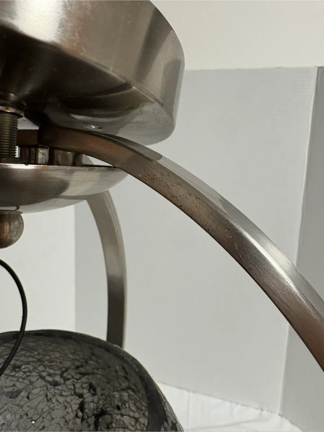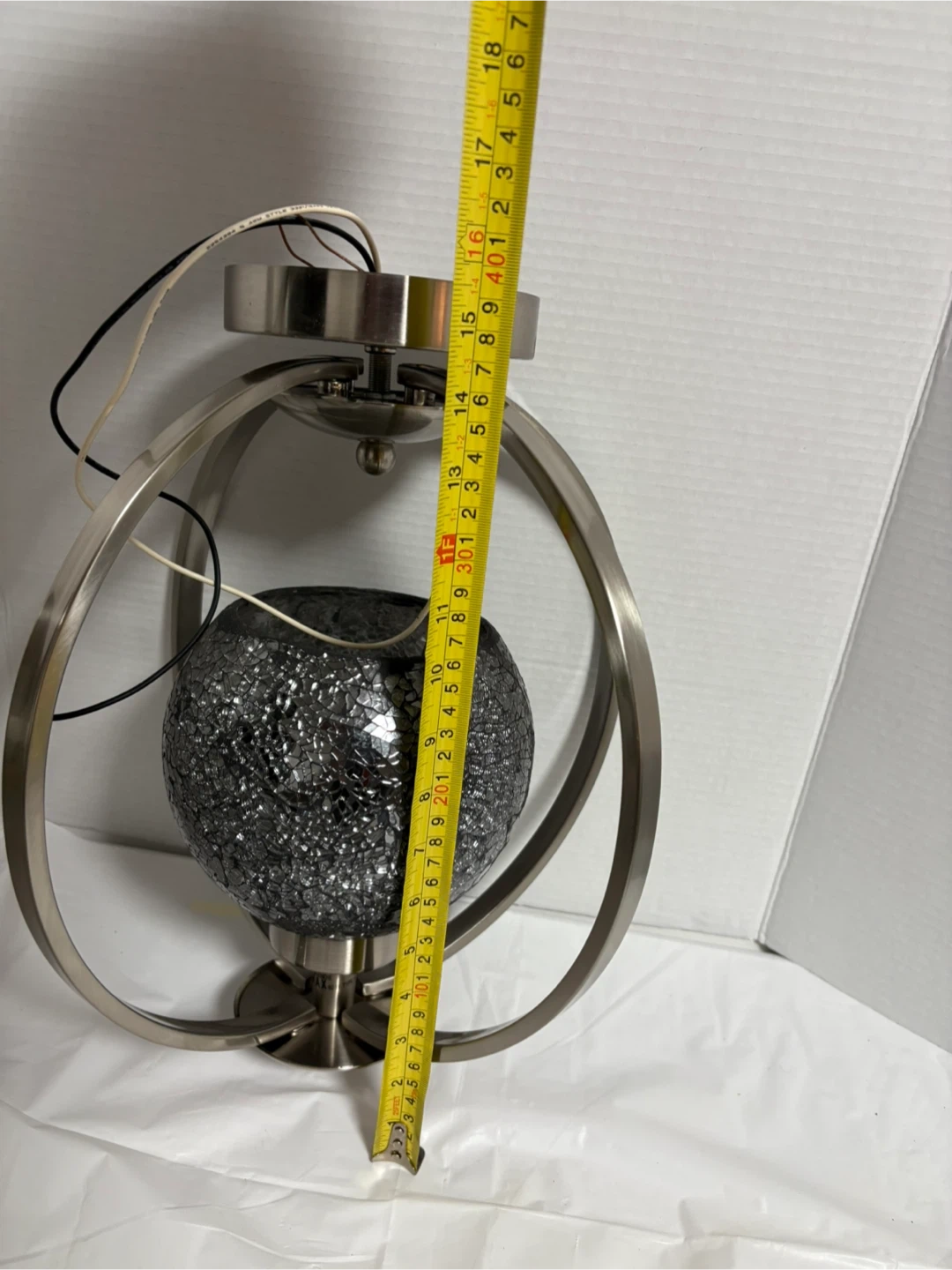 Selling a pendant light with a mosaic glass globe. The metal frame has a brushed nickel finish. There are some minor scratches on the metal, as shown in the pictures. It would be a lovely addition to any room!
