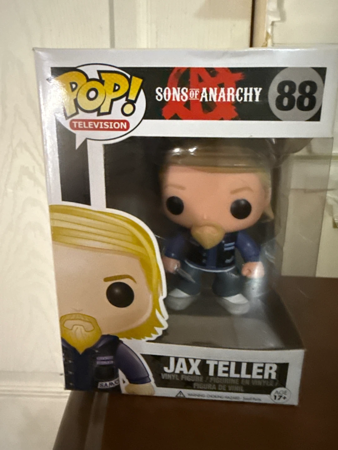 Selling a Funko Pop! Television figure of Jax Teller from Sons of Anarchy. It's number 88 in the series. Suitable for ages 17+