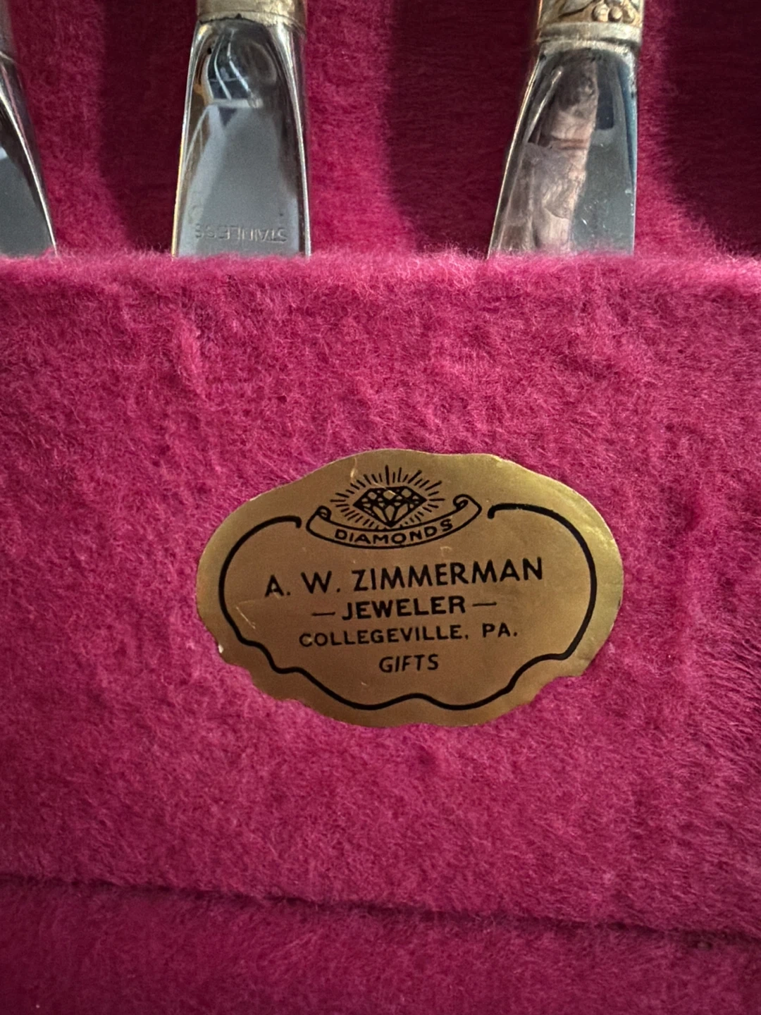 Buy & Sell🥕 A.W. Zimmerman Silverware Set🥕 A.W. Zimmerman Silverware Set$40Selling a silverware set by A.W. Zimmerman. Case has wear and the set isn’t complete but it’s great and I would love to see it go to a good home.ConditionOkayWHERE TO MEETCheck LocationView MapSELLERverifiedFrankieHarlem67348 reviews3 chats·5 favorites·154 viewsSEND CHAT TO SELLERHi Frankie! I’m interested in your listing.Hi Frankie! I’m interested in your listing.Get the Karrot app to chatSign In to chat