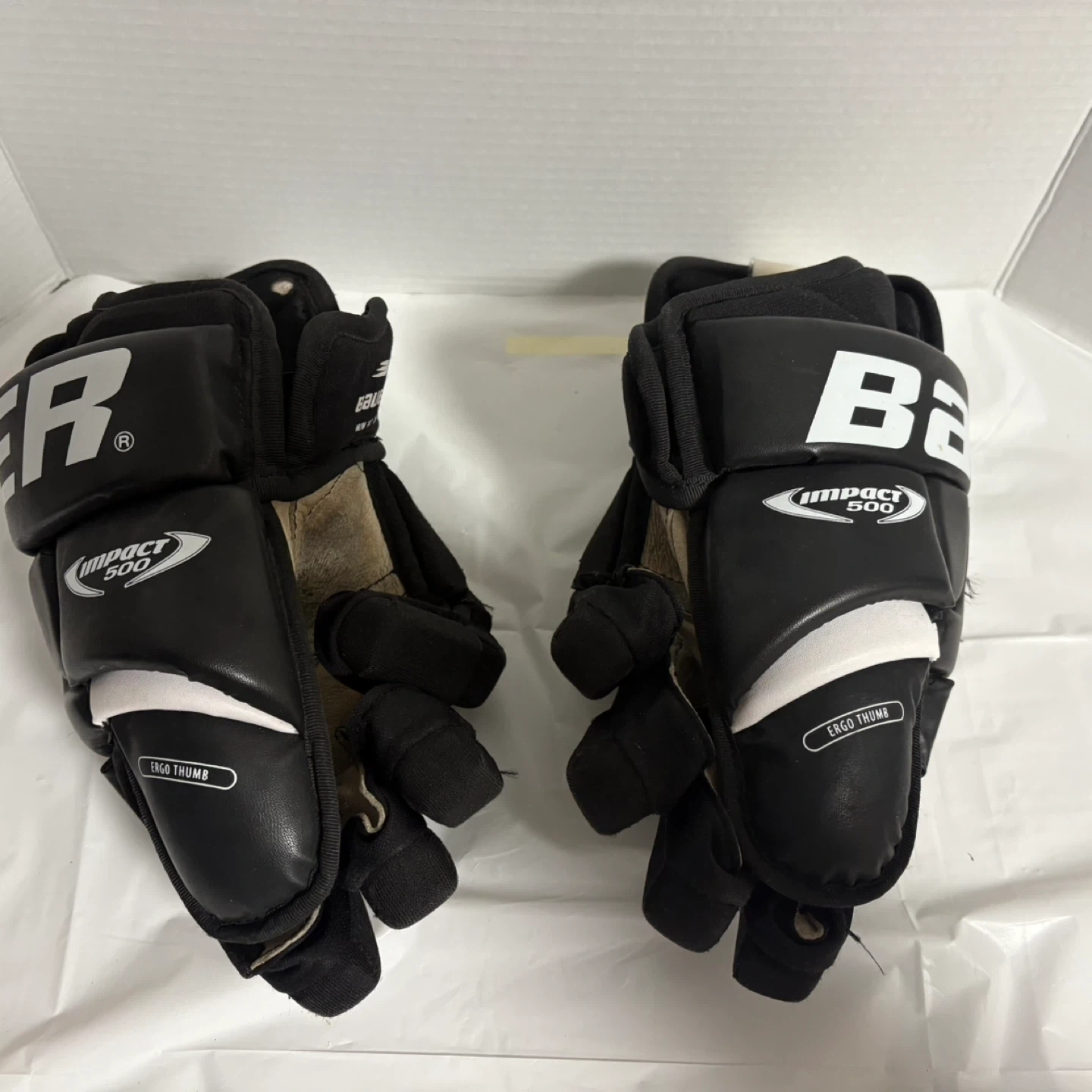 Selling a pair of Bauer Impact 500 hockey gloves. They show some signs of wear, as you can see in the photos, but still have lots of life left for some games on the ice!
