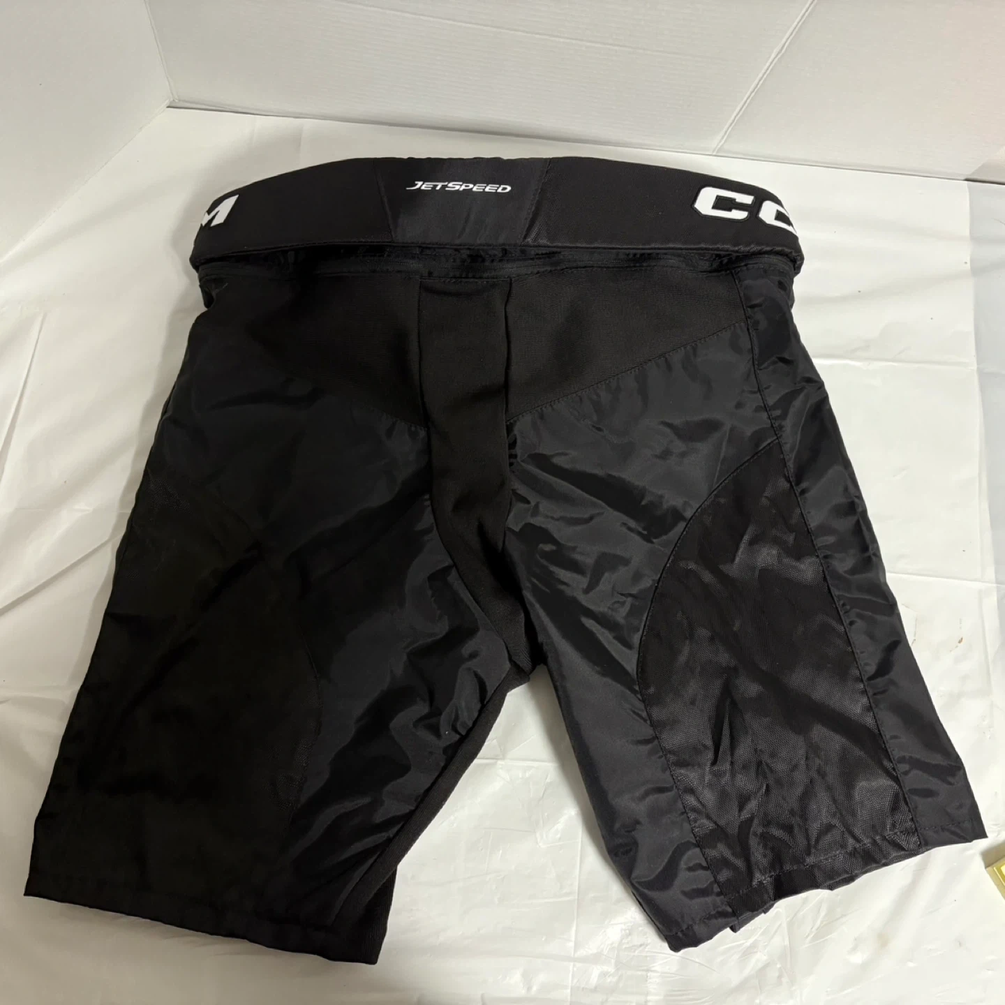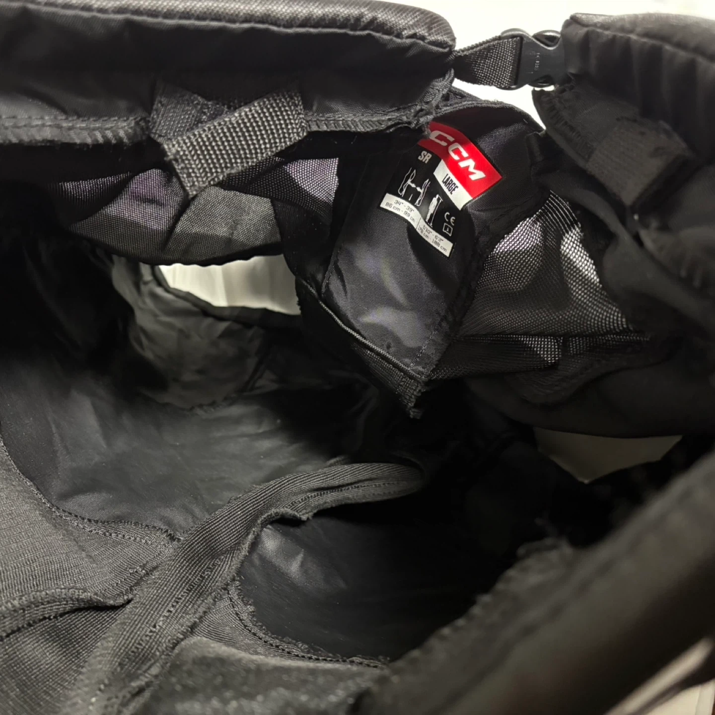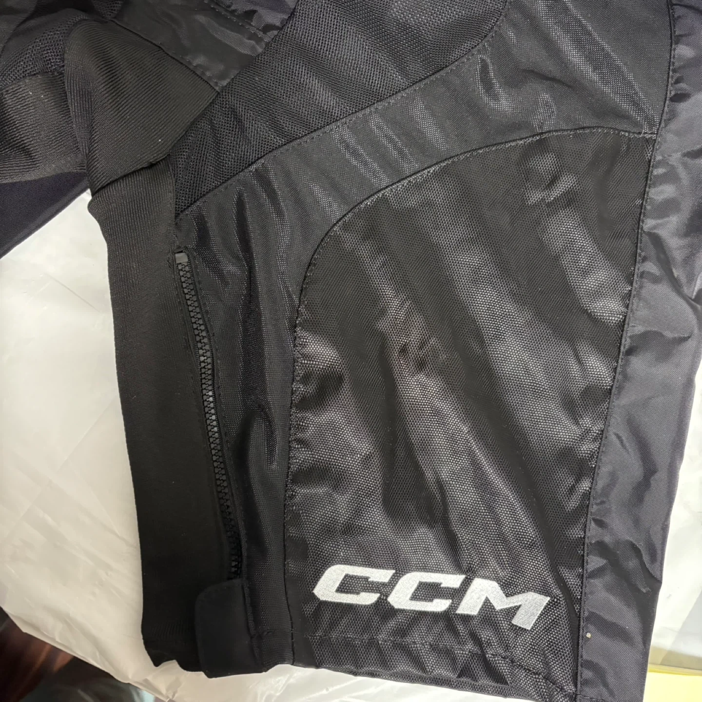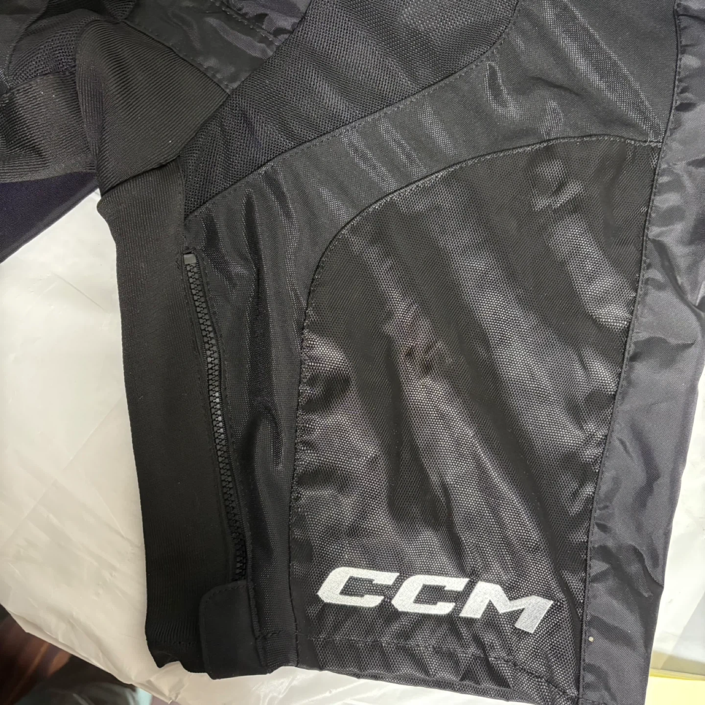 Selling a pair of CCM JetSpeed hockey pants in size large. These pants fit waist sizes 34"-39" (86 cm - 99 cm) and heights 5'10"-6'2" (178 cm - 188 cm). They're perfect for staying protected on the ice!