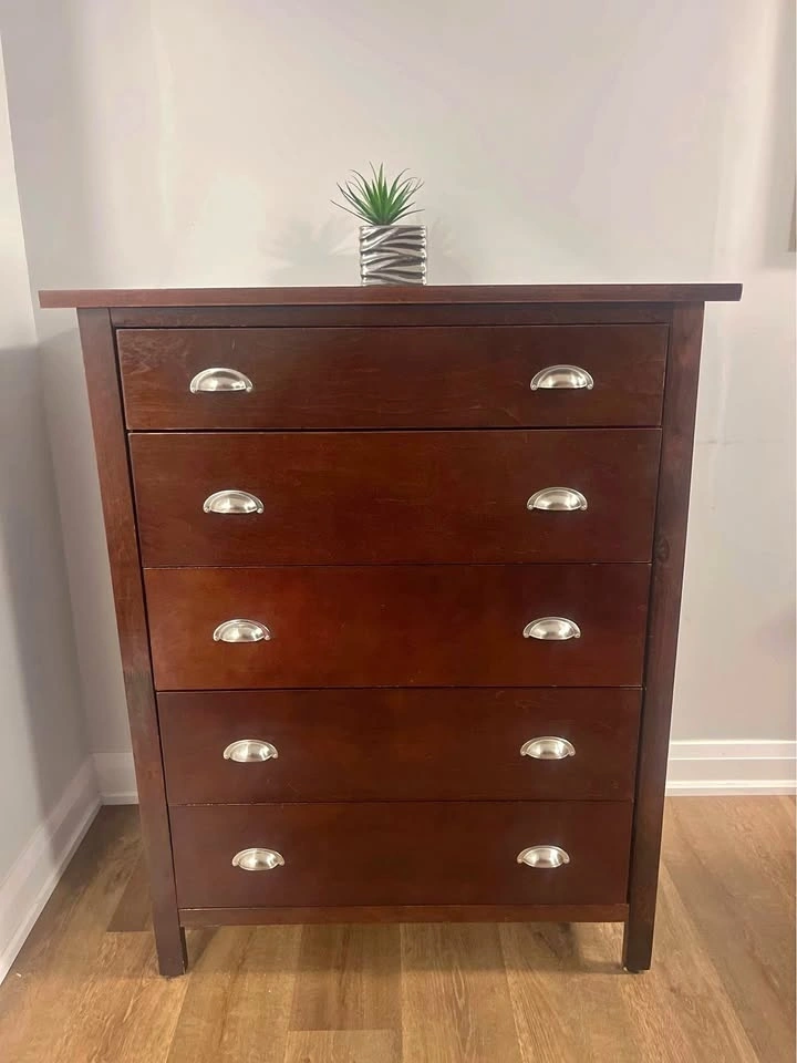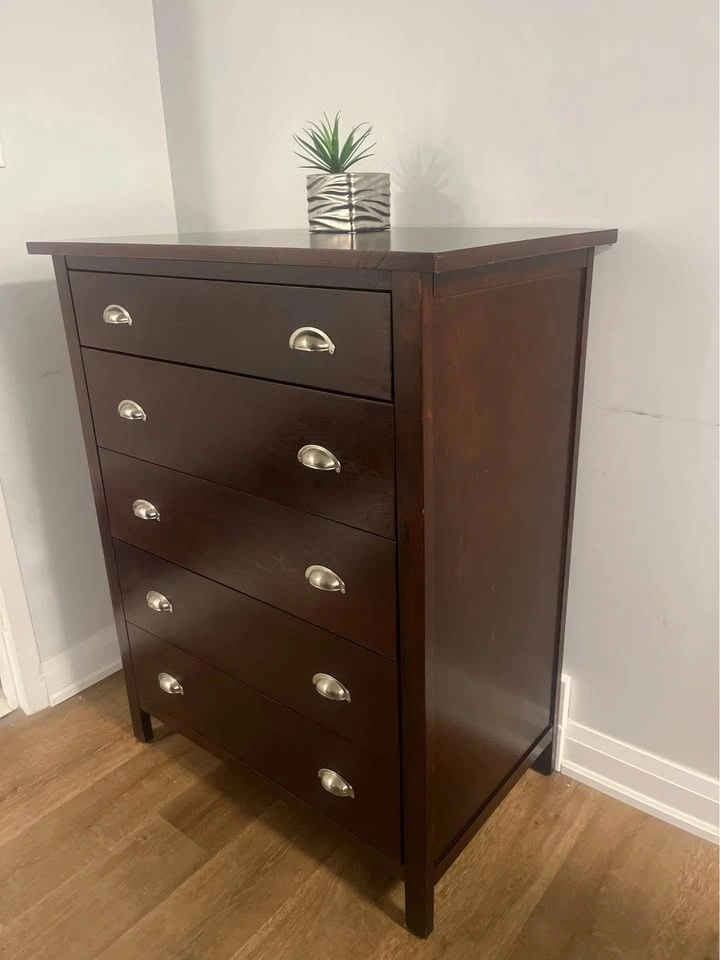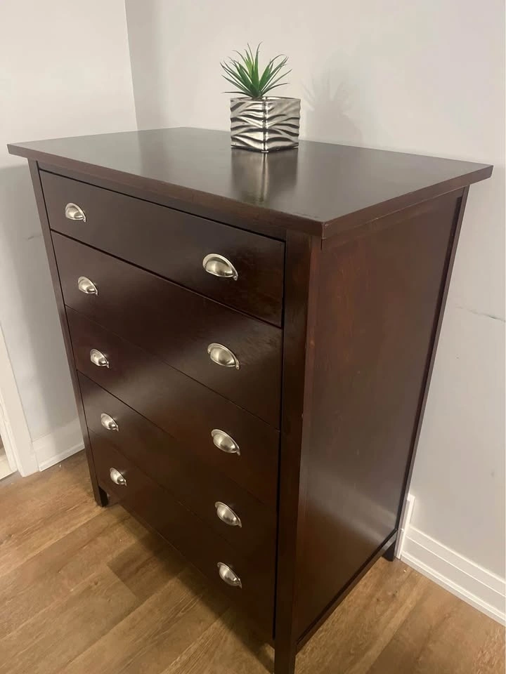 Modern 5-Drawer Dresser – Dark Wood (Delivery Available)