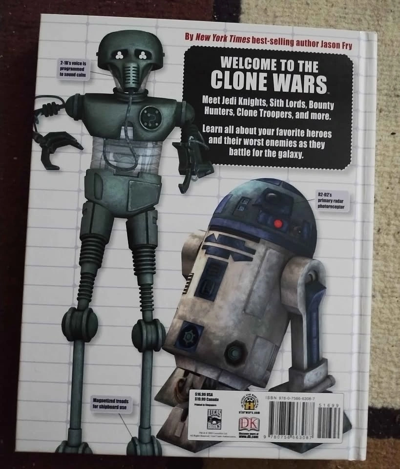 I'm selling the Star Wars Clone Wars Character Encyclopedia, covering characters from Seasons 1 and 2. This book provides vital info on characters, from Anakin Skywalker's lightsaber skills to Ziro the Hutt's schemes.