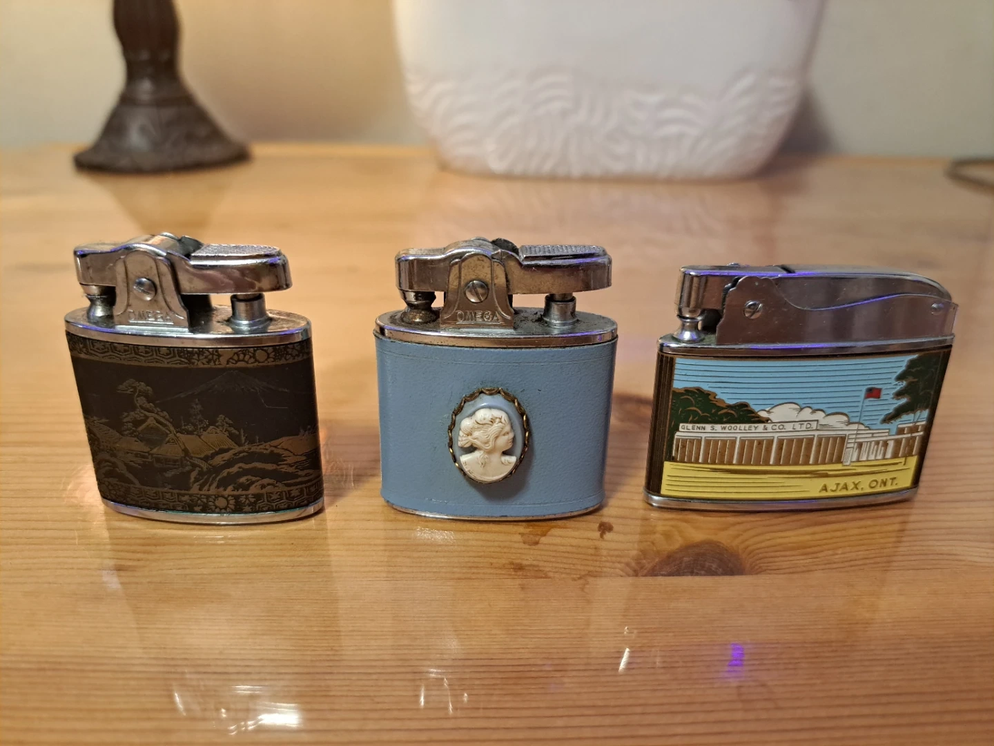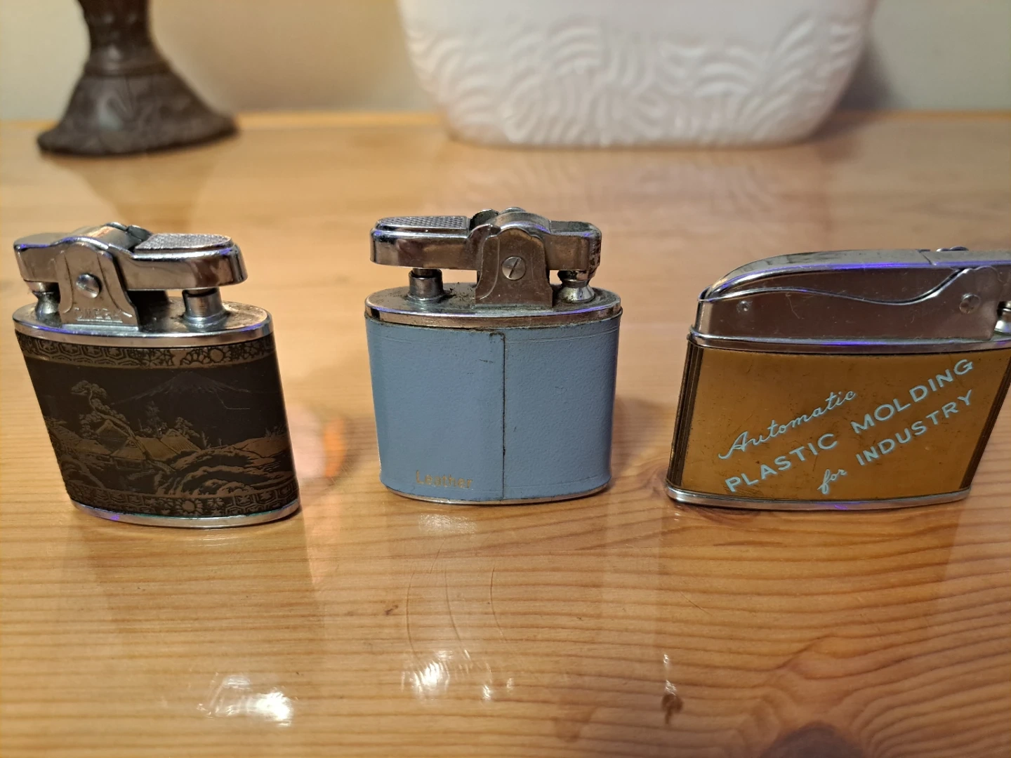 Selling a collection of vintage lighters. There's a variety of styles, each with unique designs and character. Perfect for collectors or anyone interested in vintage items!