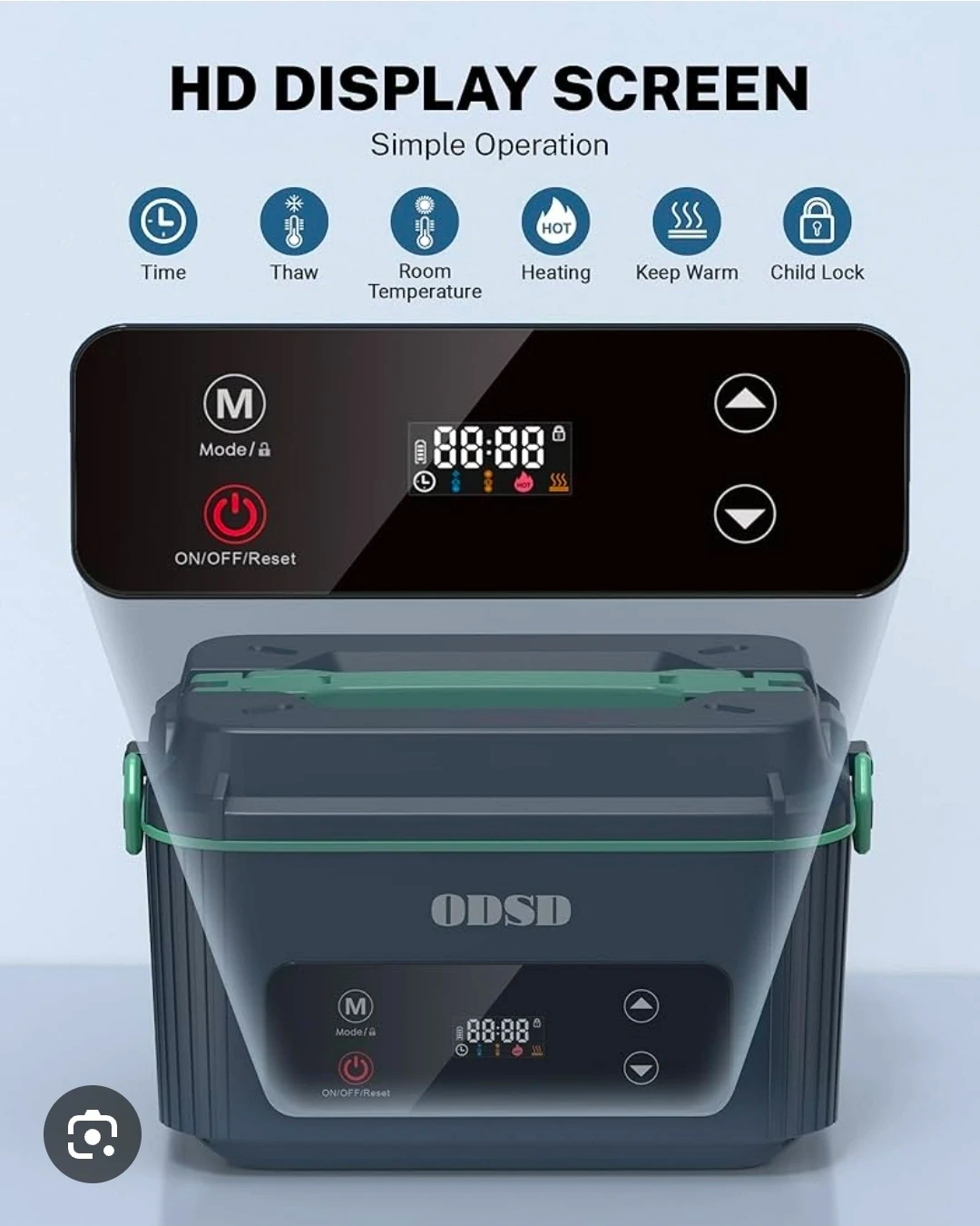 Selling a brand new ODSD Smart Lunch Box, still in its original box! It's green/dark green and has a 1L tank capacity. The model number is BX88. It's got a power of 60W and multiple input/output voltage options. Perfect for keeping your meals warm on the go!