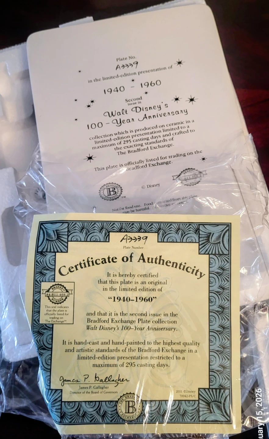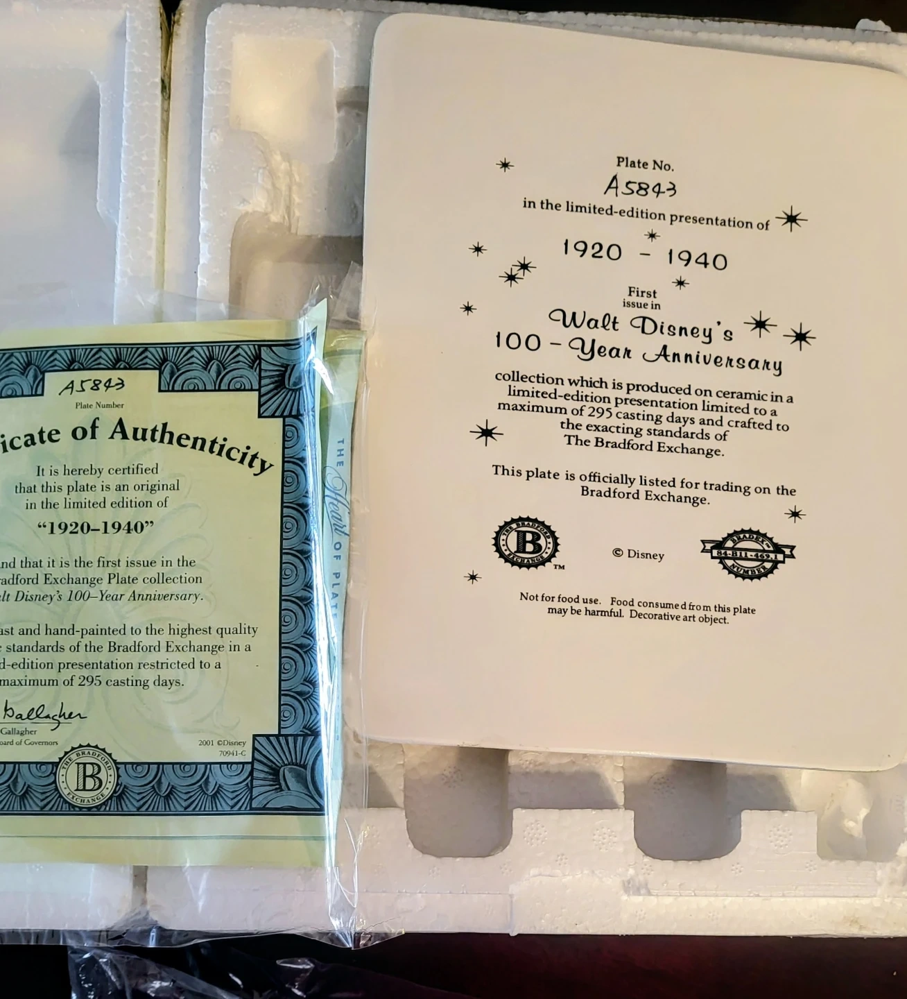 🥕 I have 3 Walt Disney 100-Year Anniversary plates for sale. All plates are new and unused, in original packaging and with all certificates.They are the 1st, 2nd and 3rd issue in the limited-edition presentation of 1920-1940, 1940-1960 & 1960-1980. Thess plates were officially listed for trading on the Bradford Exchange.