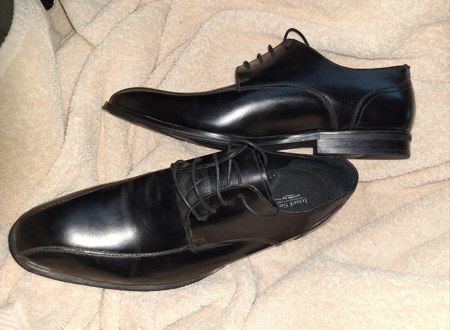 Pair of Josef Seibel dress shoes in black leather with laces.