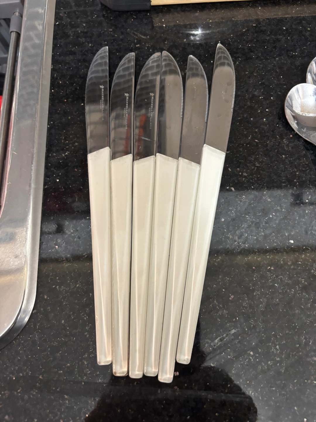 Selling a cutlery set from Maxwell & Williams. Includes knives, forks, large spoons, and small spoons. Perfect for everyday use! The handles are not flat..see last image