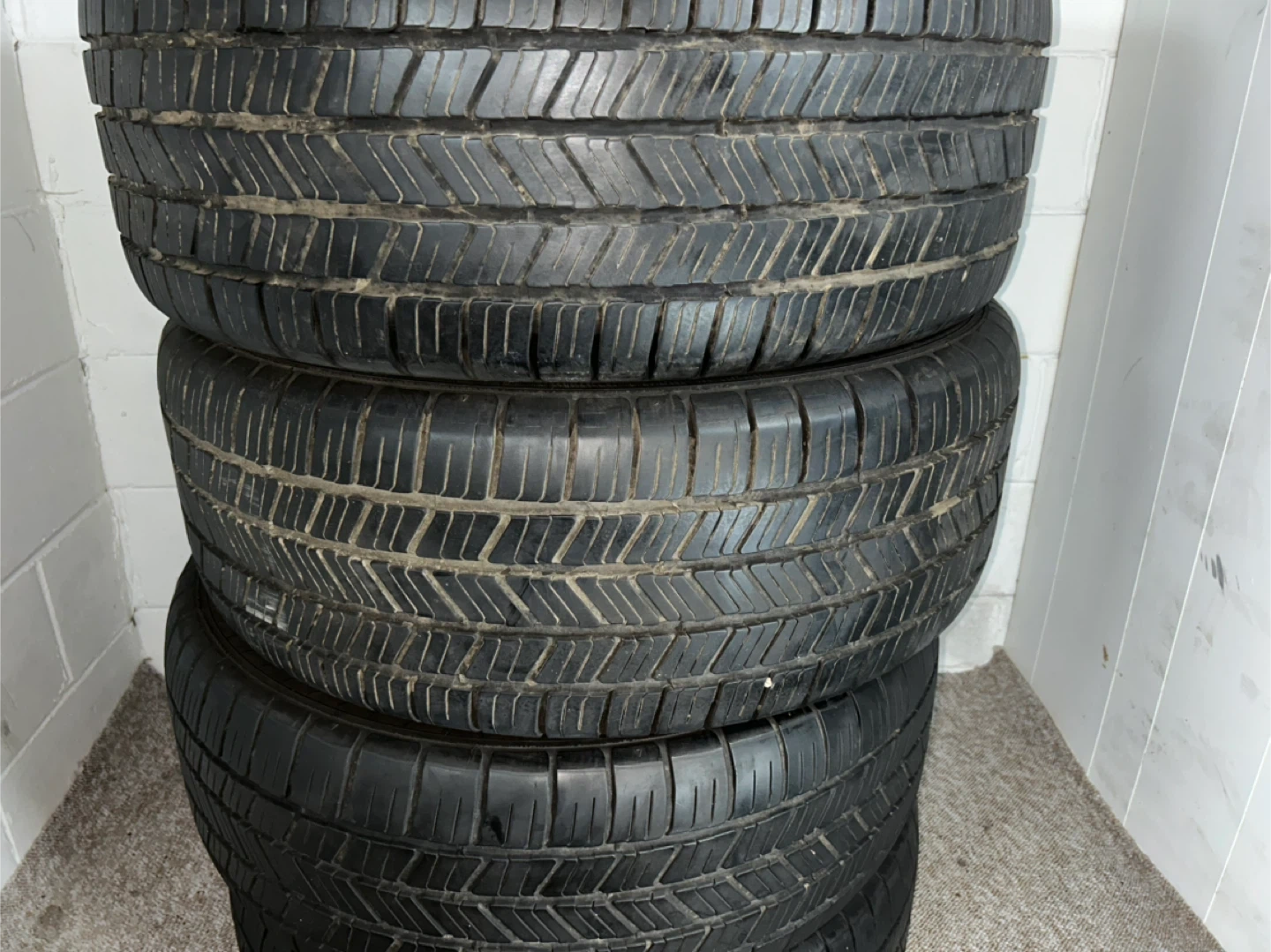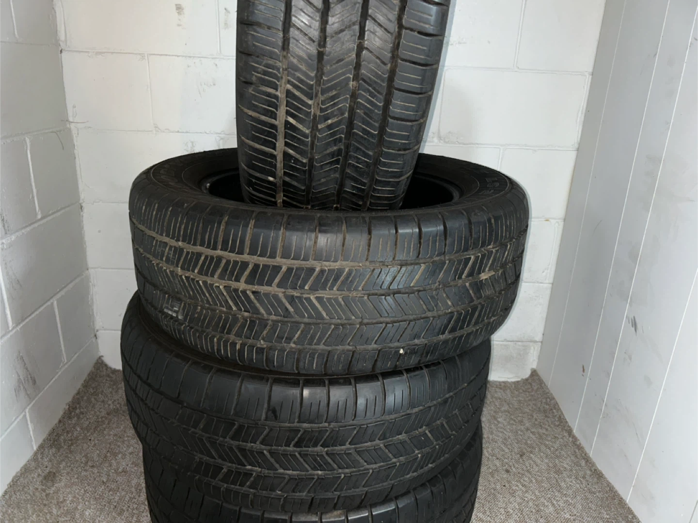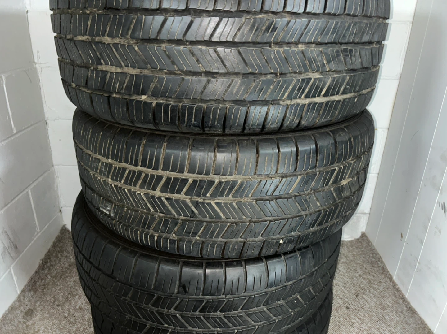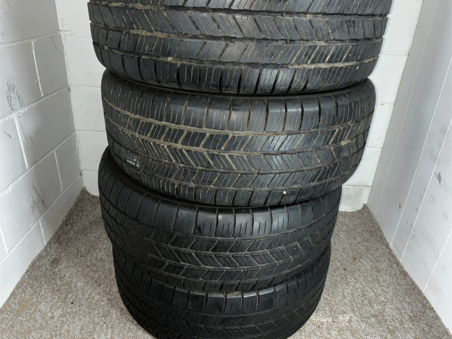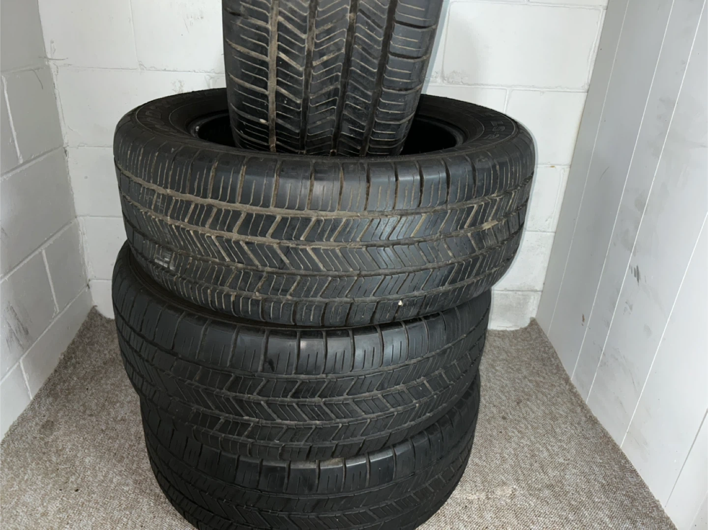 Selling a set of used tires. They show signs of wear, as seen in the photos. Good for someone looking for a budget-friendly option!