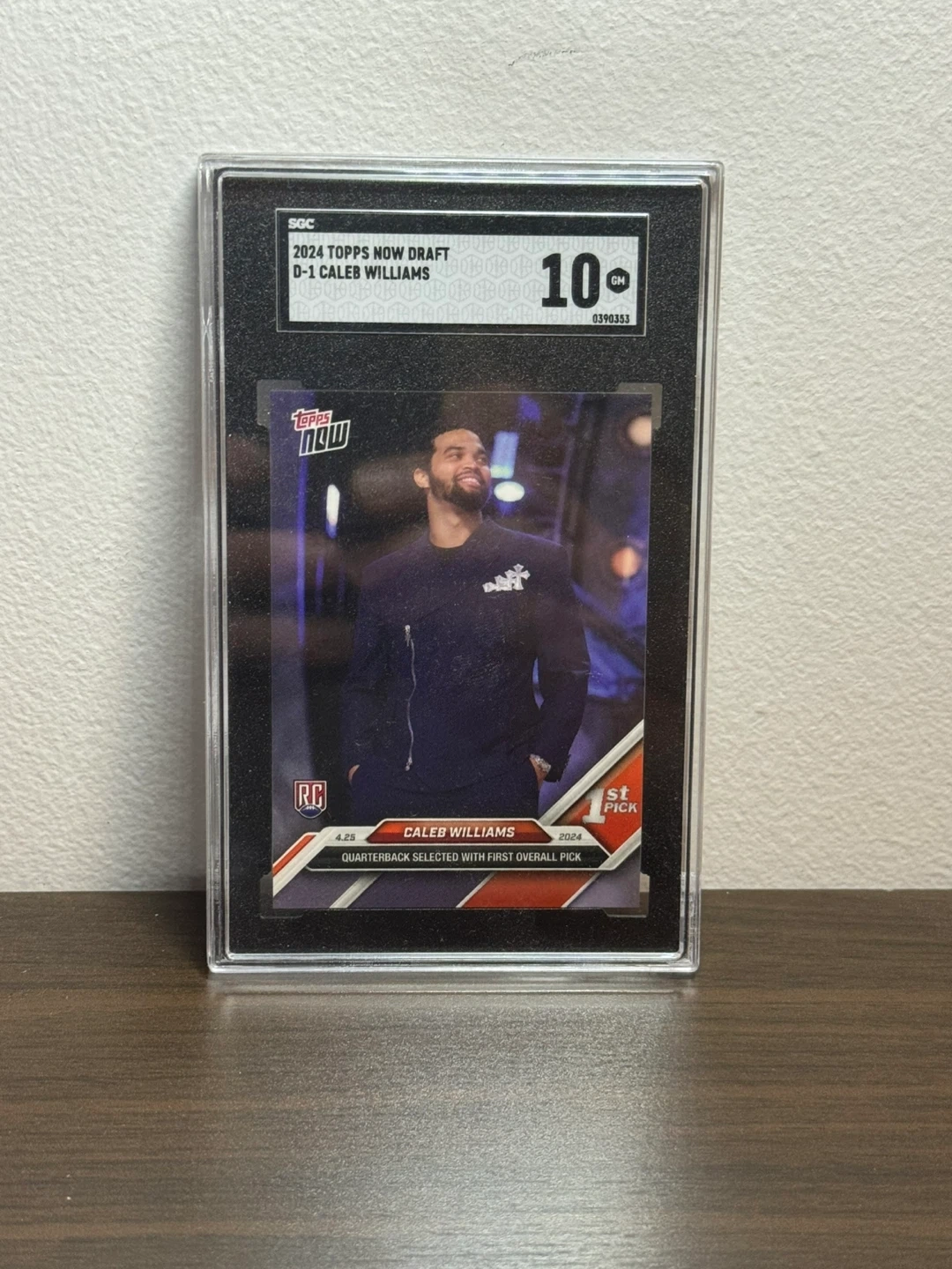 Selling a 2024 Topps Now Draft Caleb Williams rookie card, graded 10 by SGC! It's a great addition to any sports card collection. Caleb Williams was the first overall pick in the 2024 NFL draft, selected by the Chicago Bears🏈