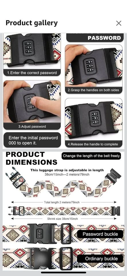 Keep your luggage safe and secure with this adjustable luggage strap! It features a password buckle for added security and is adjustable in length! The strap is made with thickened nylon webbing and a POM buckle for durability. It's perfect for connecting bags or luggage for easy carrying!
