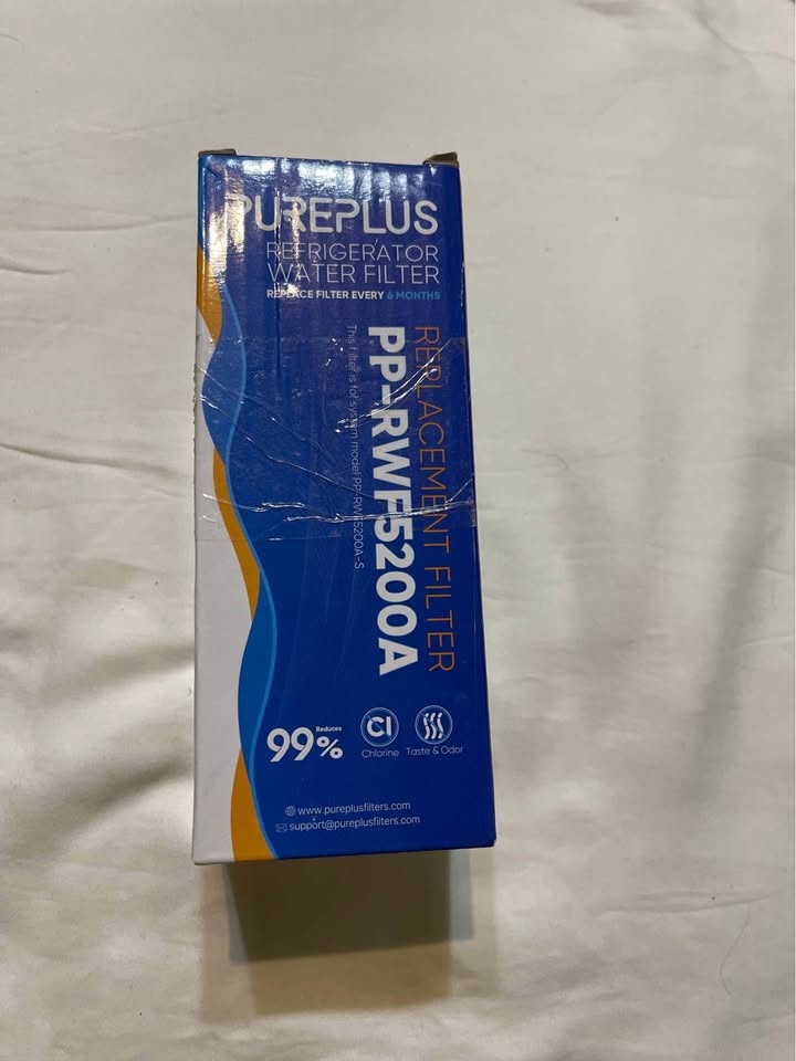 I'm selling a brand new Pureplus refrigerator water filter, model PP-RWF5200A. This replacement filter reduces chlorine taste and odour, ensuring your water is fresh and clean. Replace filter every 6 months. Box included!
