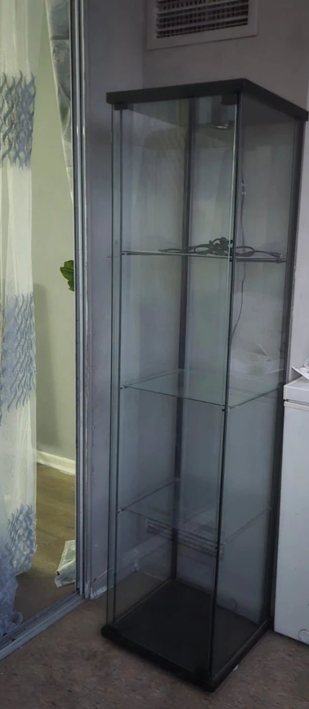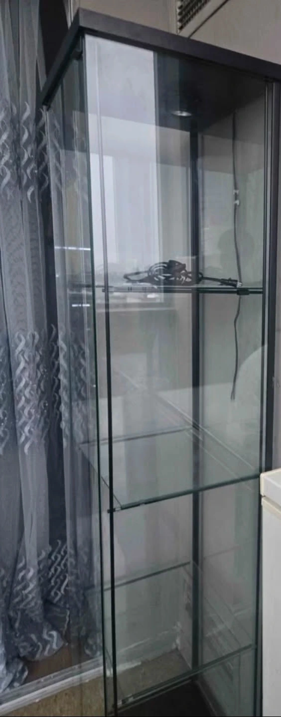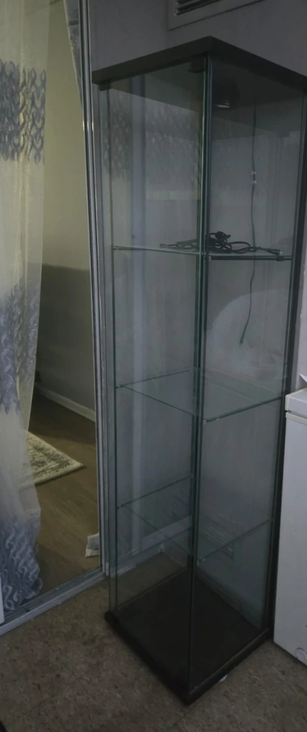 Selling an IKEA Blaliden glass-door cabinet in black! It's in great shape and ready to display your favourite items. The dimensions are 35x32x151 cm (13 3/4x12 5/8x59 1/2 "). Originally bought for $99