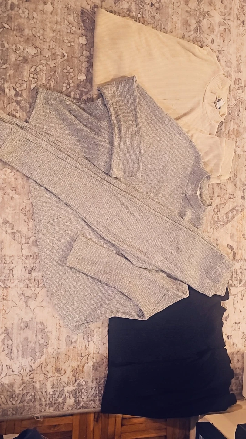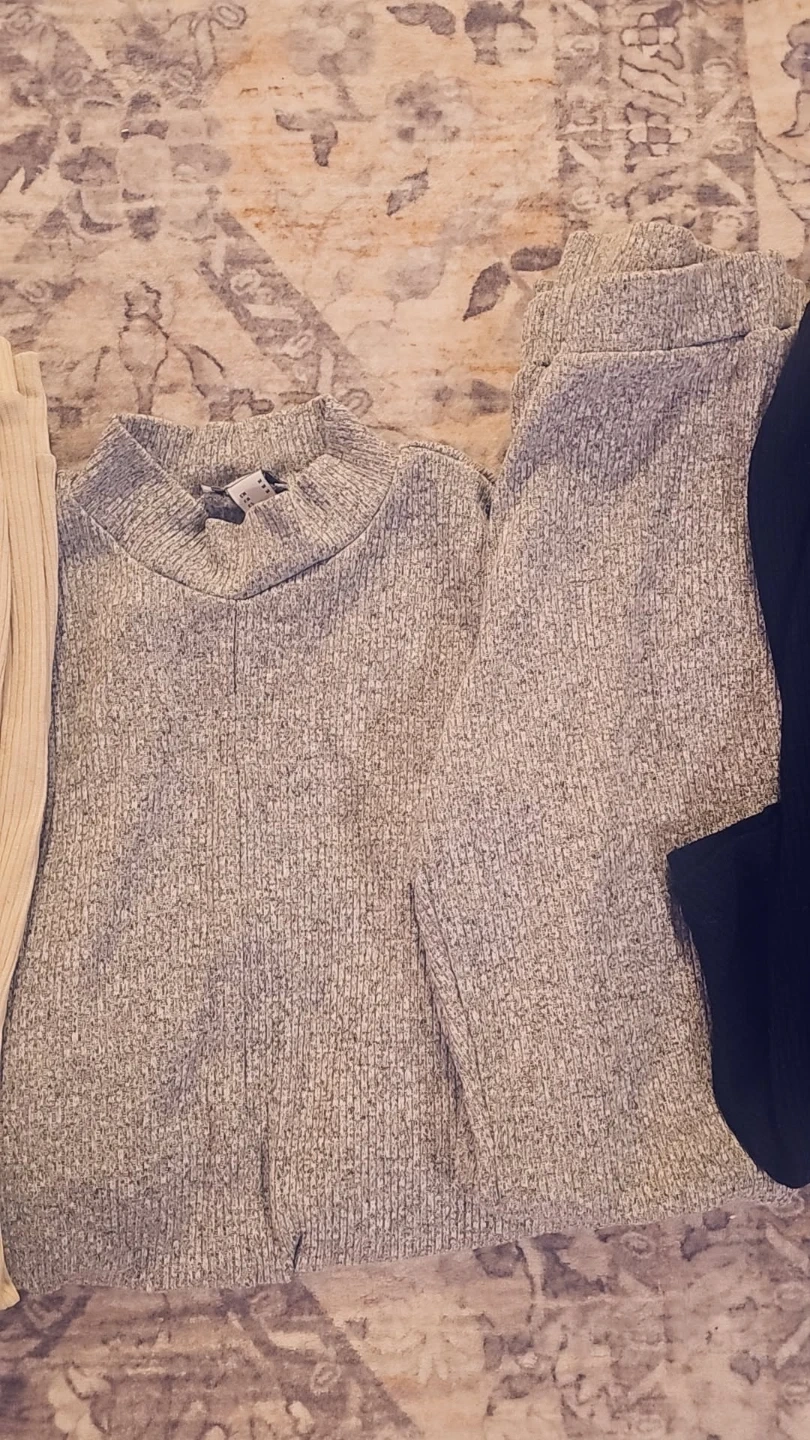 Selling 3 sets of ribbed knit tops and bottoms There is a black set, a grey set, and a cream set. All are in great condition and perfect for lounging or casual wear!