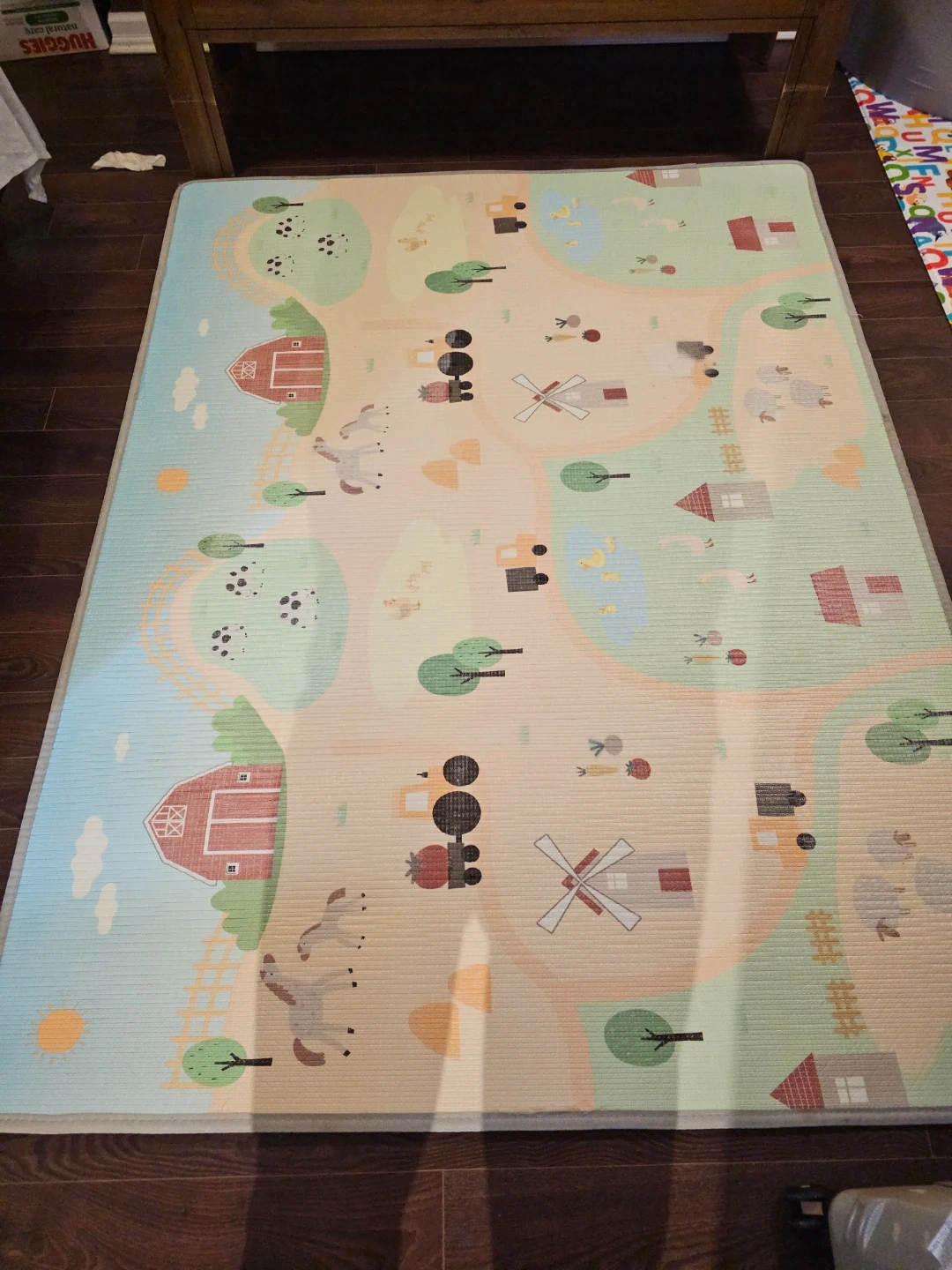 Selling a gently used kids play mat with a cute farm design! It's perfect for tummy time, crawling, or just a soft spot for your little one to play. The mat is easy to clean and provides a cushioned surface for your child