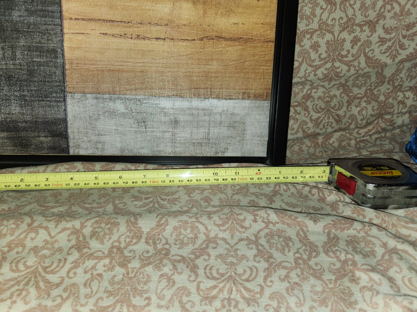 Selling a large piece of abstract wall art. It measures approximately 4 ft by 2 ft. The artwork features a blend of neutral tones with blue, brown, and grey accents. It's framed and ready to hang to add a modern touch to your space