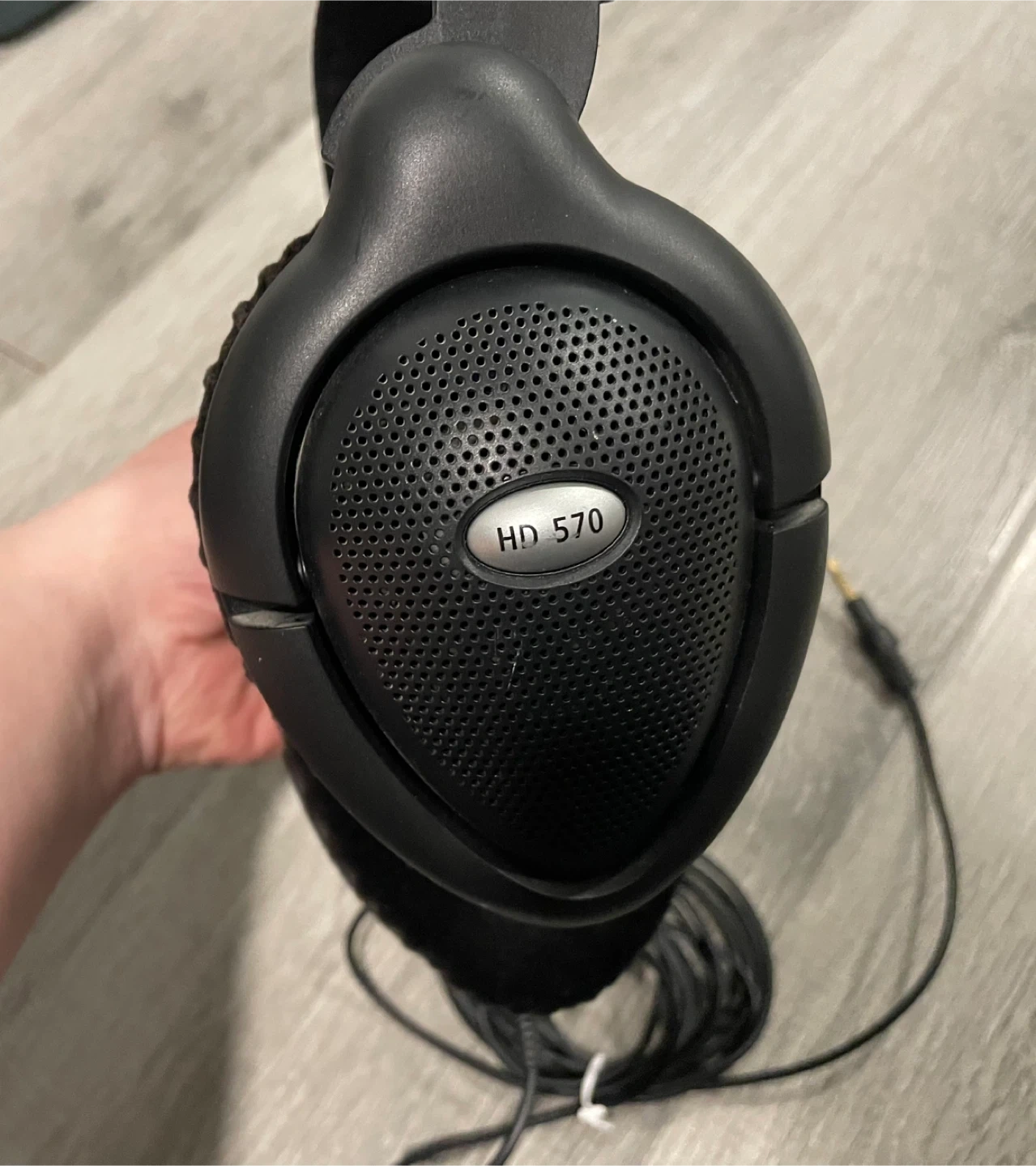 Selling a pair of Sennheiser HD 570 headphones in black. They show some signs of use, particularly on the earcups, but are still functional. Great for listening to music or podcasts.
